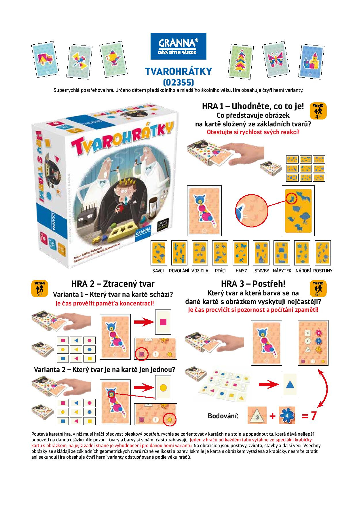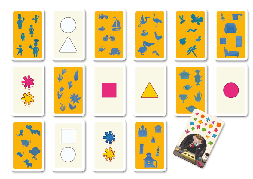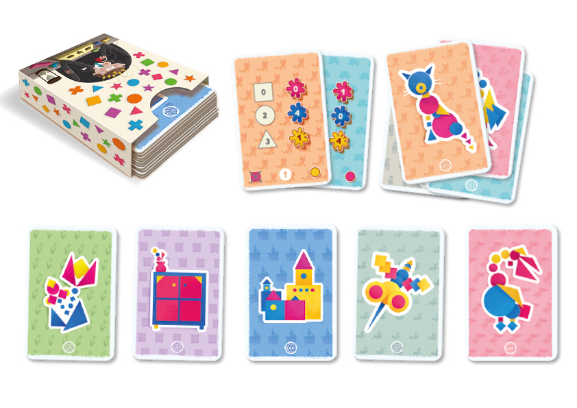 Jeden z hráčů vytáhne ze speciální krabičky kartu s obrázkem. Na obrázcích jsou postavy, zvířata, stavby a další věci. Všechny obrázky se skládají ze základních geometrických tvarů různé velikosti a barev. Jakmile je karta s obrázkem vytažena z krabičky, nesmíte ztratit ani sekundu! Hra obsahuje tři různé varianty odstupňované podle věku a pomůže zlepšit soustředění i rychlost reakcí celé rodiny.