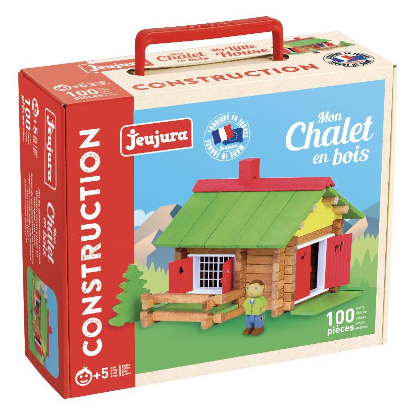 Dřevěná stavebnice inspirována alpskými chaletami potěší každého malého stavitele a stane se ozdobou dětského pokoje. Stavebnice Jeujura Constructions mají dlouhou tradici a patří mezi klasické francouzské hračky. Nabízí série tématicky věnované chatám, domkům a farmám, ale také divokému západu a středověku. Dají se mezi sebou volně kombinovat a k řadě z nich je také nabízeno příslušenství, figurky a vozidla. Jsou vyráběny ve Francii, z masivního bukového a borovicového dřeva francouzského původu. Dílky stavebnic jsou ošetřeny výhradně za použití barev a laků na bázi vody. Každá sada je balena v praktickém lepenkovém kufříku potištěném rostlinnými inkousty a součástí balení je snadno pochopitelný návod.