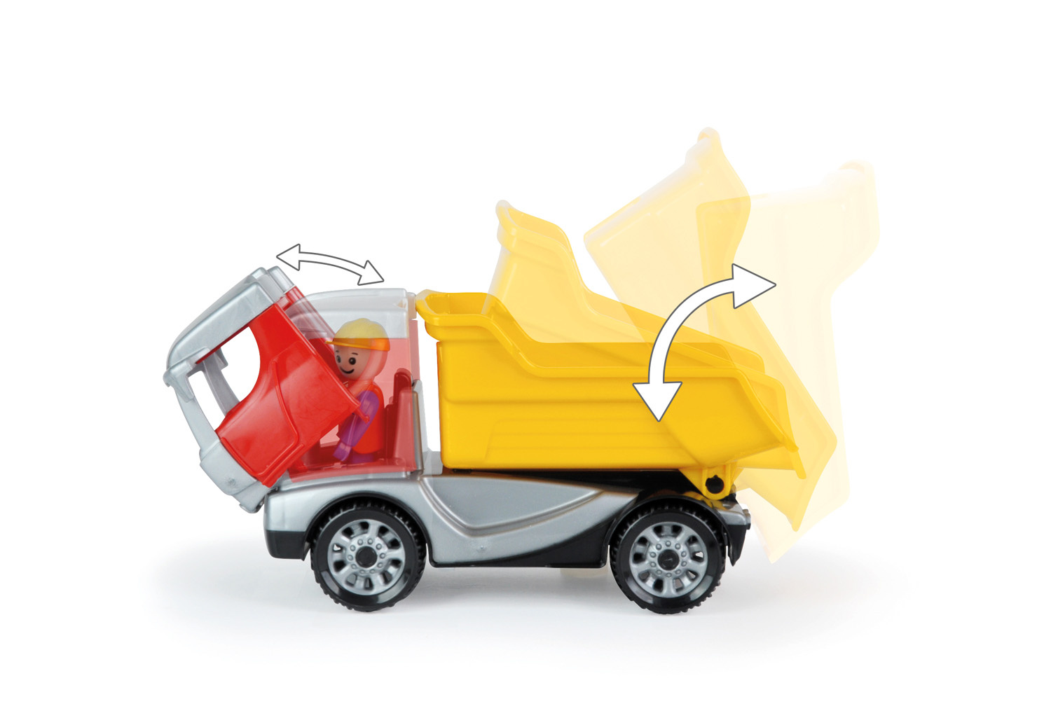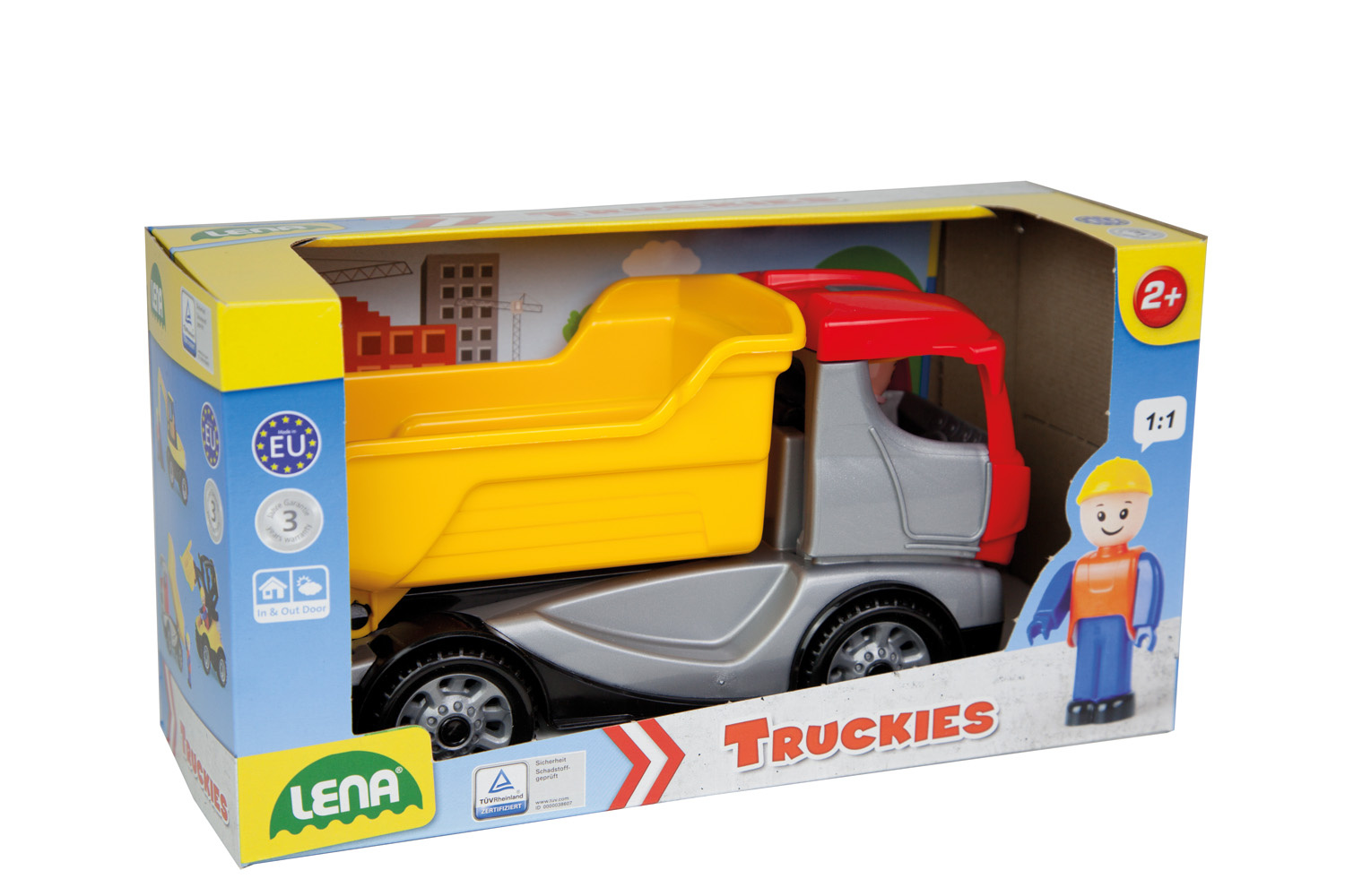 Truckies sklápěč z kvalitního plastu a velmi pevnou stavbou. Plně mechanicky funkční. Obsahuje odklopitelnou kabinu s aktivním panáčkem. Velikost 22 cm. Vhodné pro děti od 2 let.
