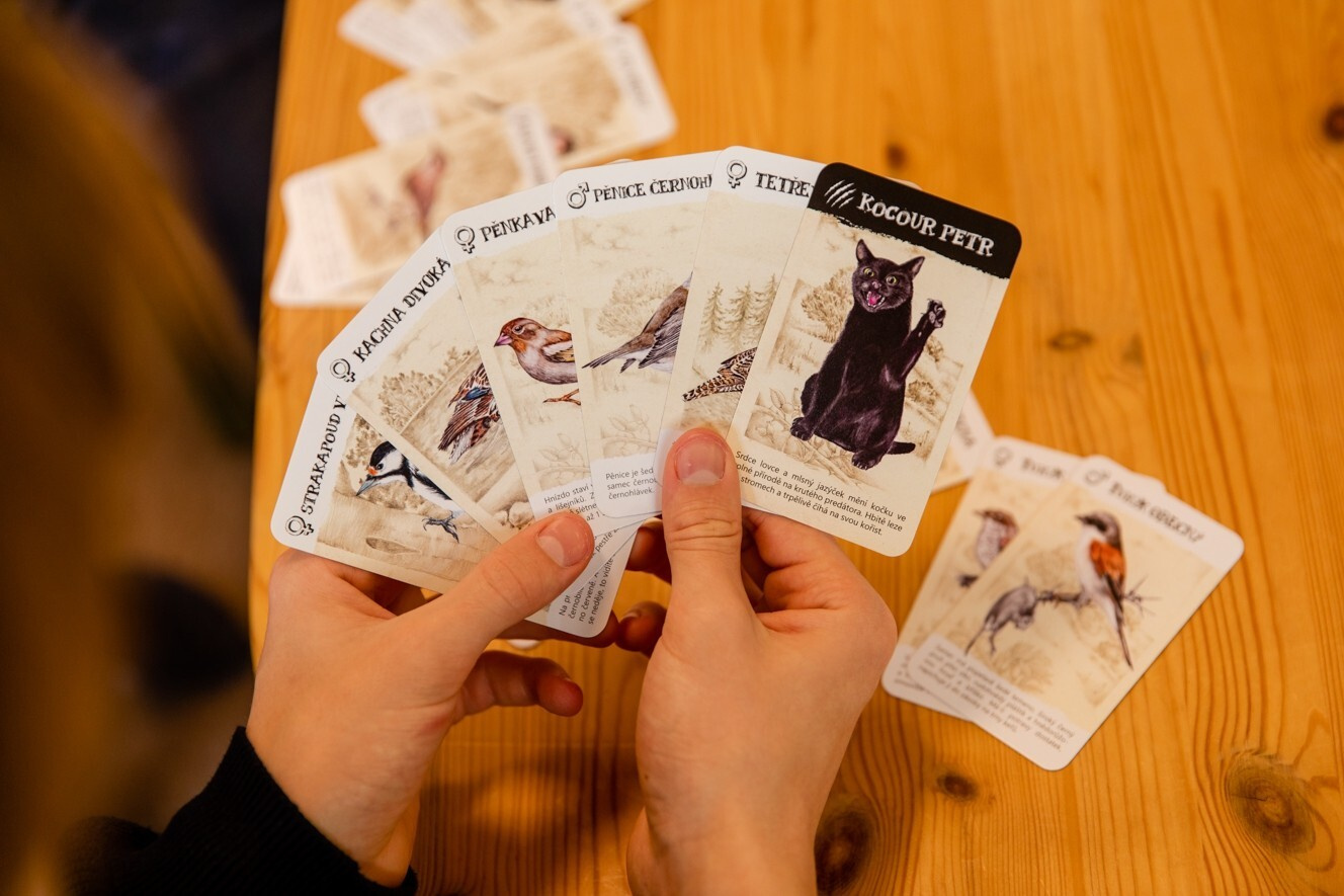 Hra Černý Petr - Ptačí páry od firmy Lesní svět nabízí nejen zábavu, ale i poučení. Každá z 33 herních karet, vyrobených z ekologicky šetrného papíru s certifikátem PEFC, měří 6 cm x 10 cm a je zdobena originálními ilustracemi od českých umělců.