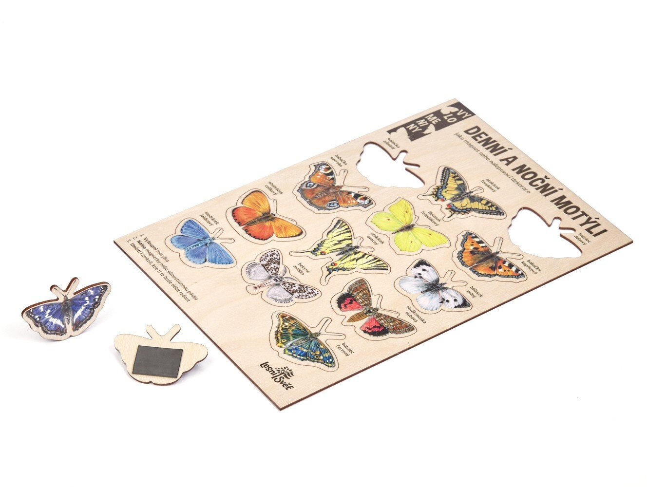 Vylomeniny - Noční a denní motýli z firmy Lesní svět představují nejen skvělou zábavu pro děti, ale i originální dekoraci pro domácnost. Tyto dřevěné figurky, vyrobené z kvalitního certifikovaného materiálu, jsou dílem českých řemeslníků a ilustrátorů, kteří do každého kousku vkládají srdce a duši.