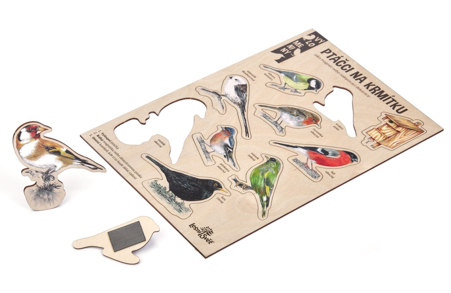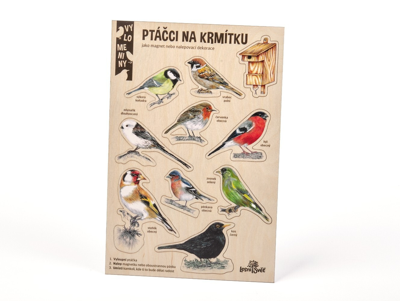 Vylomeniny - Ptáci na krmítku z firmy Lesní svět představují nejen skvělou zábavu pro děti, ale i originální dekoraci pro domácnost. Tyto dřevěné figurky, vyrobené z kvalitního certifikovaného materiálu, jsou dílem českých řemeslníků a ilustrátorů, kteří do každého kousku vkládají srdce a duši.