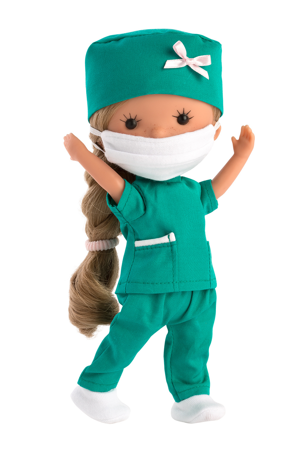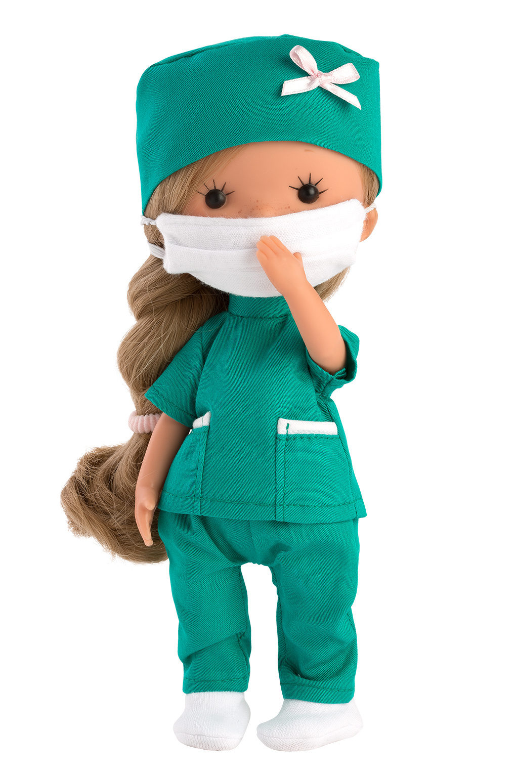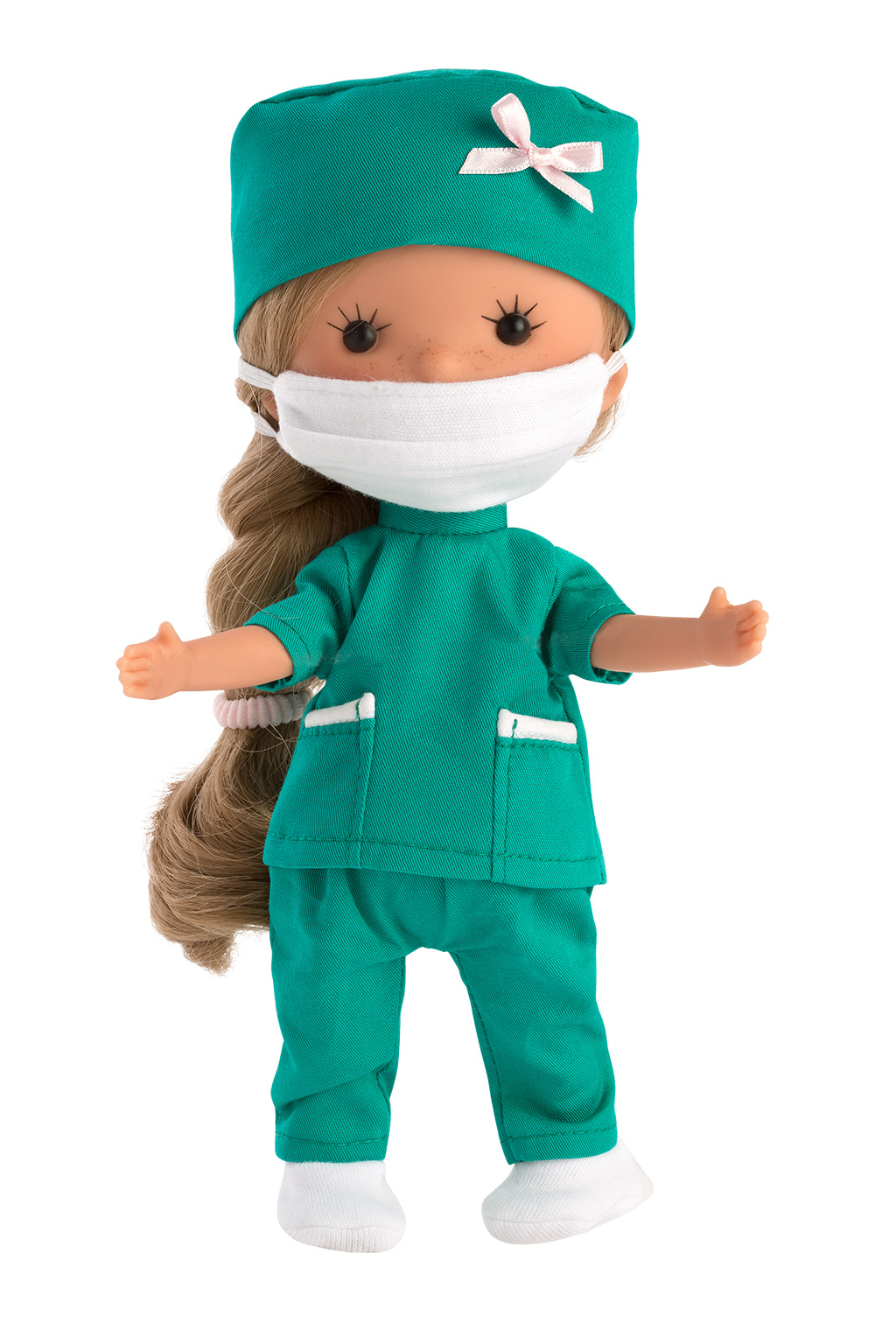 Panenky Miss Minis jsou novinkou v nabídce Llorens. Vinylové tělíčko je oblečeno do zdravotního úboru. Panenka je polohovací a může i sedět – ruce a nohy jsou k tělu přichyceny kloubem. Velikost 26 cm.