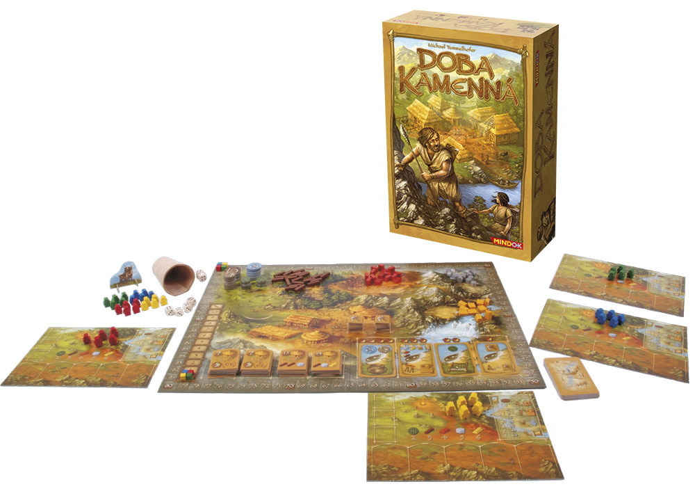 Budovatelská desková hra. Doba kamenná je doba kamenná. A rozhodně to není doba jednoduchá. Nejdůležitějším úkolem vašeho kmene je obstarat dostatek jídla pro všechny své členy. A proto je potřeba vyrazit na lov, a nebo alespoň vypěstovat obilí na prvních zoraných polích. Civilizace se pomalu začíná rozvíjet, a aby se mohla rozvíjet dále, je třeba natěžit dostatek dřeva, jílu, kamene a také zlato ve zlatonosné řece. Pak můžete dále rozšiřovat vesnici, získávat kvalitnější nástroje a další civilizační výhody.
