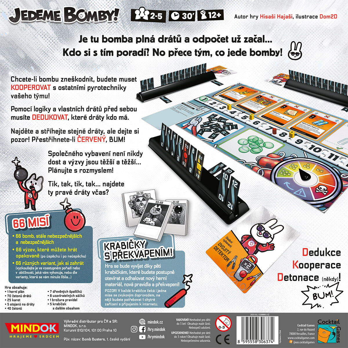 Jedeme bomby! je napínavá kooperativní hra, ve které se stanete součástí týmu pyrotechniků s jediným cílem: společně zneškodnit tikající bombu! Zapomeňte na individuální slávu – tady jde o týmovou práci, přesnou komunikaci a chladnou hlavu pod tlakem. Každá mise přináší nové výzvy a pravidla, která prověří vaši schopnost spolupráce a dedukce. Podaří se vám přestřihnout ty správné dráty, než bomba vybuchne?