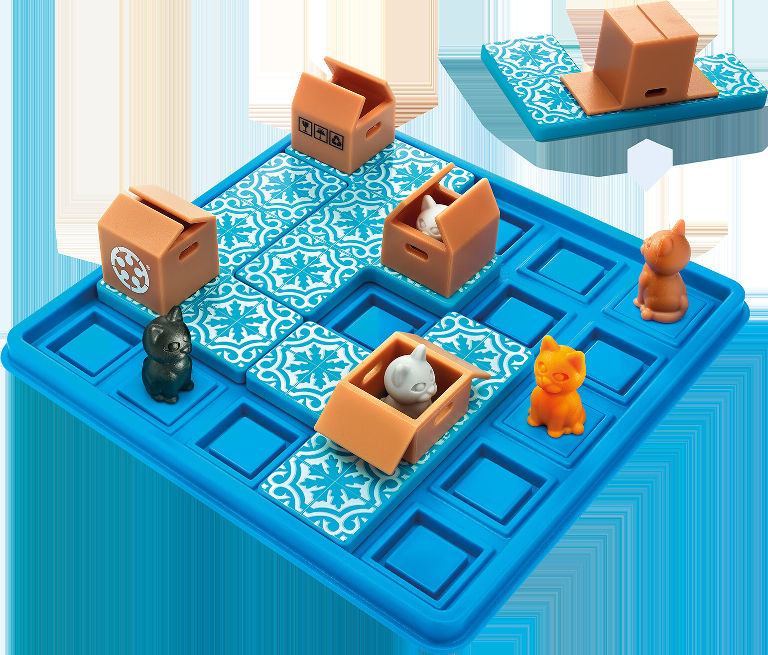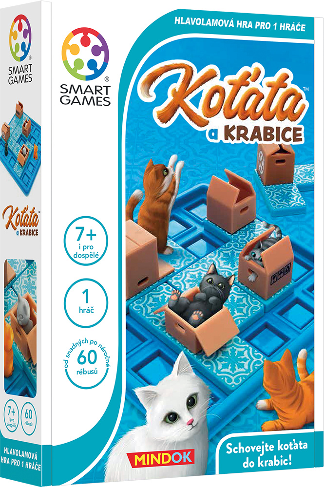 Koťata prostě milují kartonové krabice! Postupně, jeden po druhém, přemisťujte jednotlivé dílky s krabicemi až do té doby, než budou všechna koťata spokojeně schovaná v krabicích. Pomůžete všem najít jejich oblíbené schovávačky? Hlavolamová hra pro děti i dospělé, která se díky praktické herní desce s víkem skvěle hodí i na cesty.