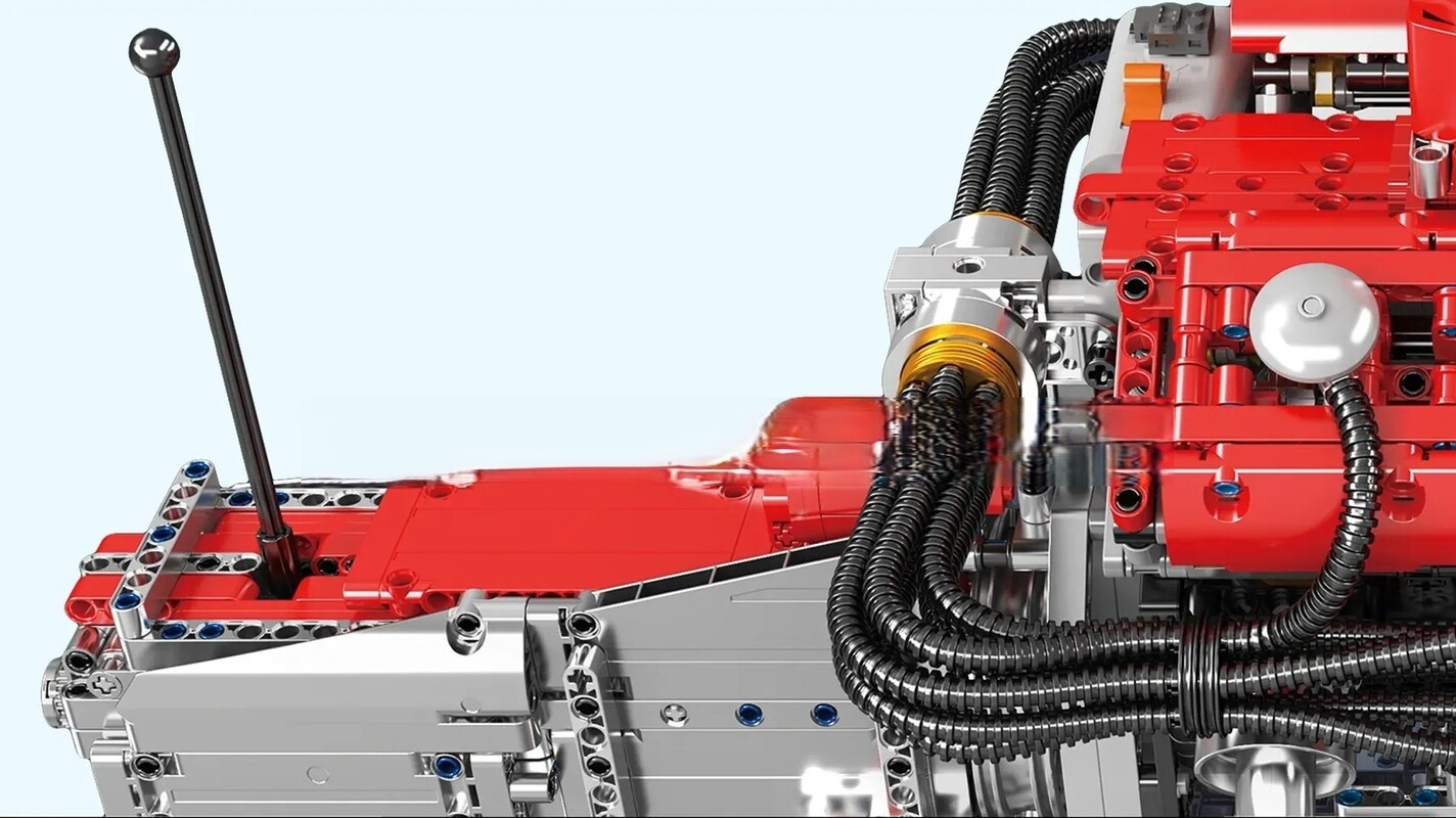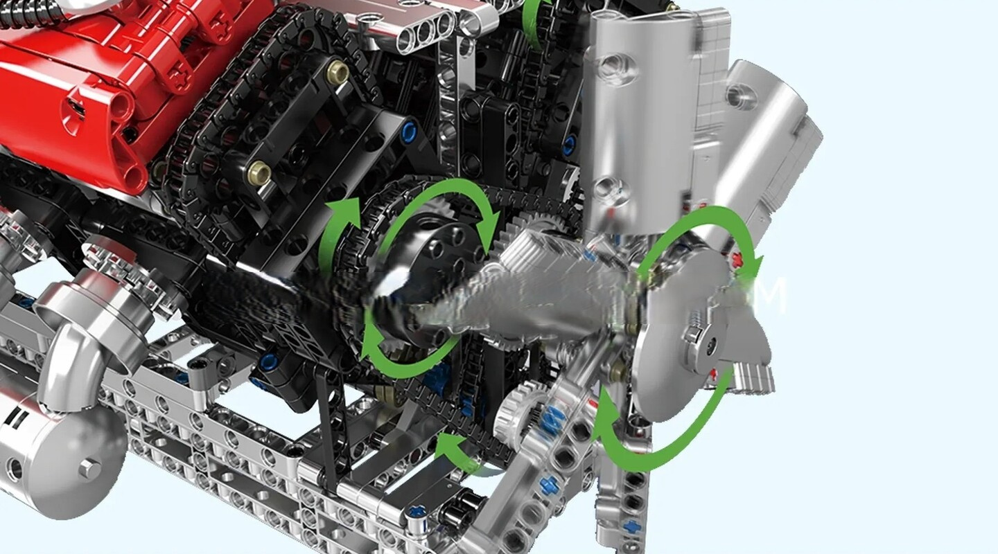 - Funkční mechanika – obsahuje pohyblivé písty, rotující lopatky chlazení, otočnou klikovou hřídel a přenos síly na plně funkční převodovku.