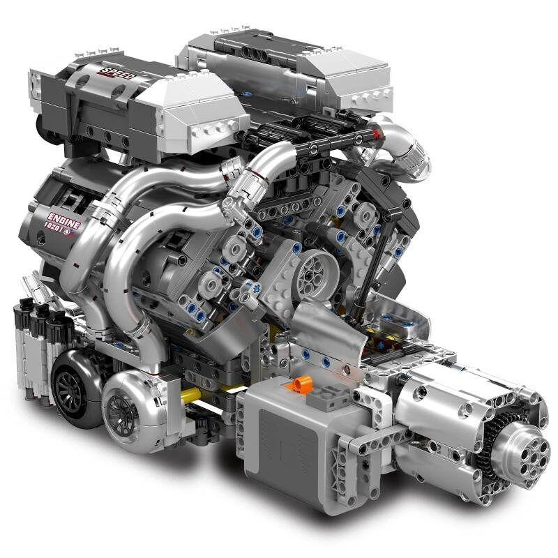 Model je složen z 2024 dílků a poháněn elektrickým L motorem napájeným přes battery box. Po zapnutí motor simuluje skutečný chod – otáčejí se písty, klikový hřídel, ventilátor i komponenty turba. Převodovku lze ovládat manuálně pákou umístěnou na horní straně modelu.