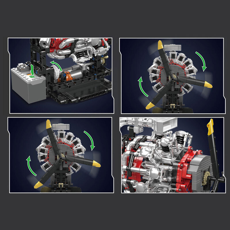Stavebnice hvězdicového leteckého motoru s vrtulí je propracovaným modelem, který kombinuje realistický design s pohyblivými částmi. O chod modelu se stará výkonný L motor napájený battery boxem – vše je součástí balení (kromě baterií).
