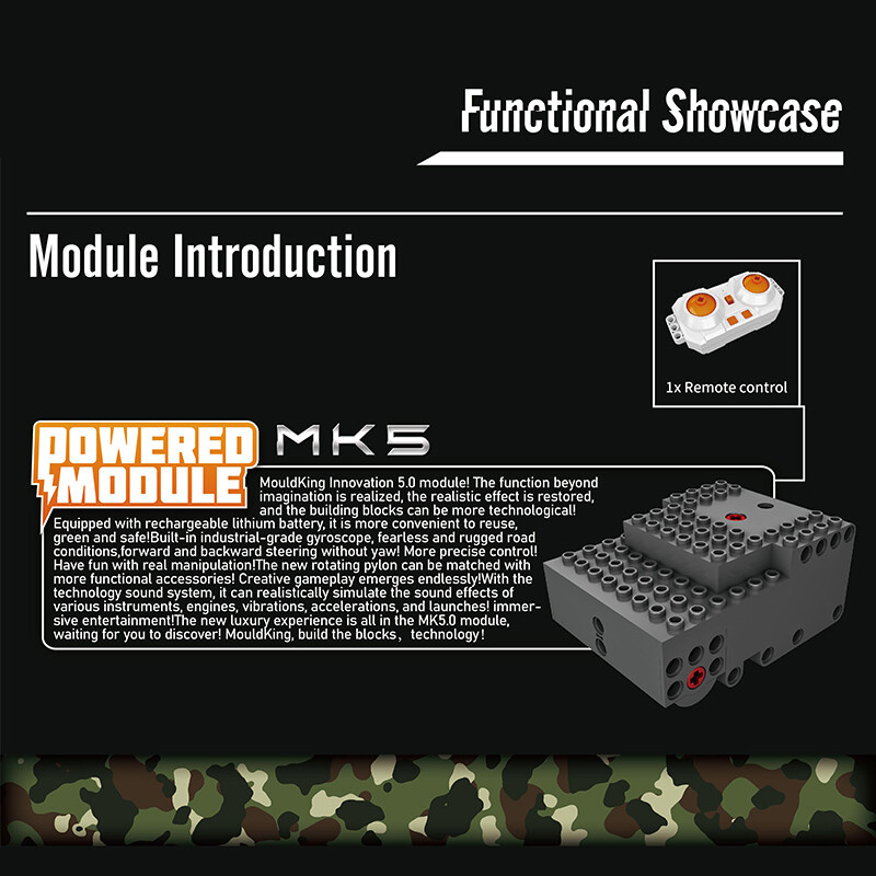 Srdce moderních hračkářských tanků, Smart Modul MK5, představuje revoluční krok v oblasti technologie hraček. Díky vestavěným motorům, které jsou jádrem tohoto modulu, je pohyb tanku hladký a realistický. Neméně důležitá je však vestavěná baterie, eliminující nutnost neustálého dokupování a výměny baterií. Stačí jednoduše připojit přibalený kabel a zařízení je opět připraveno k akci. To vše doplňují zvukové efekty motoru a střelby, které ponoří uživatele ještě hlouběji do virtuálního světa tankových bitev. Smart Modul MK5 tak otevírá nové možnosti v interaktivní hře a posouvá hranice toho, co bylo dosud u hraček považováno za možné.