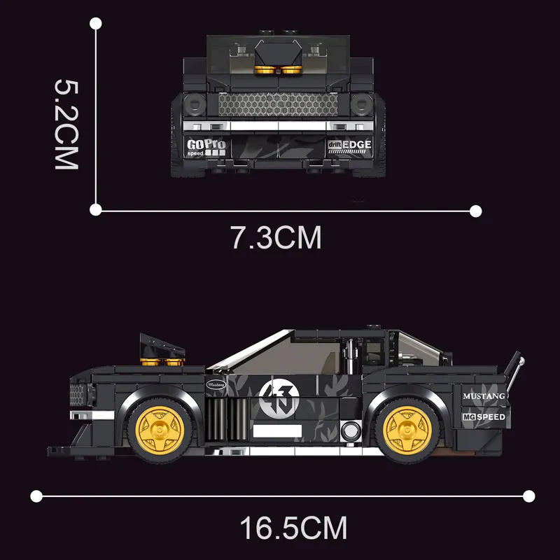 Model miniaturního auta Mould King Ford Mustang 1965 je složen z 408 dílků a je vhodný pro děti od 8 let. Výsledný model měří 16,5 cm na délku, 7,3 cm na šířku a 5,2 cm na výšku a složení je jednoduché podle přehledného návodu. Tento model je vybaven nádhernými, elegantními barvami, hladkými liniemi a pružnými spoji karoserie, které obnovují strukturu vzhledu. Jedná se o luxusní sportovní vozidlo s vysokou mírou simulace.