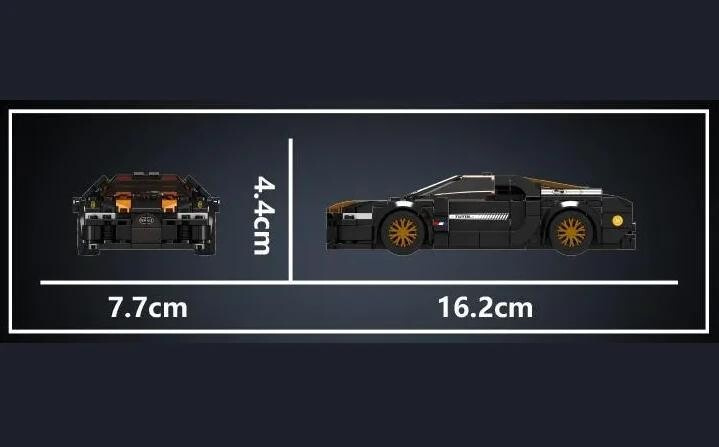 Sestavíte jej z 386 dílků podle přehledného návodu. Součástí balení je také průhledný výstavní box, který chrání autíčko před prachem a zároveň umožňuje elegantní vystavení. Díky nopům na podstavci lze model pevně upevnit a boxy mezi sebou jednoduše vrstvit – ideální pro sběratele.