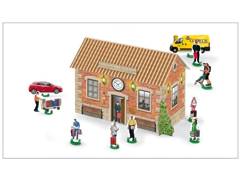 Pequetren 685 Příměstský vlak Renfe se stanicí a čepicí výpravčího