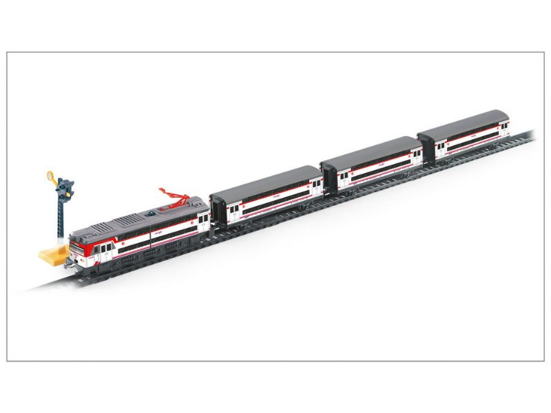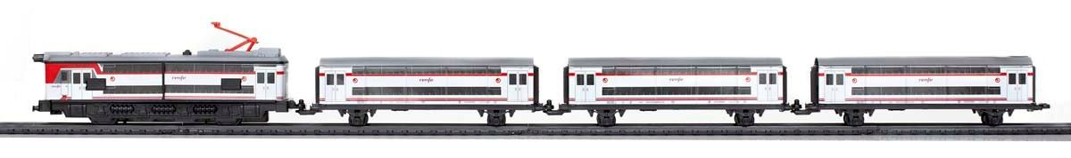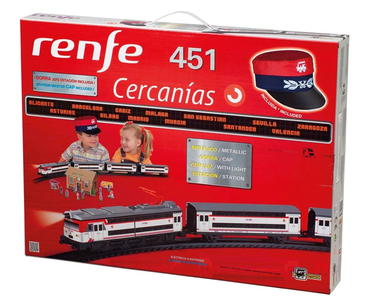 Kovový osobní vlak na baterie se světly, 3 vagóny, železniční stanicí a čepicí přednosty stanice. Vlak jezdí po trati dlouhé 4,4 m. Cercanías je španělský osobní vlak provozovaný španělskými dráhami Renfe.