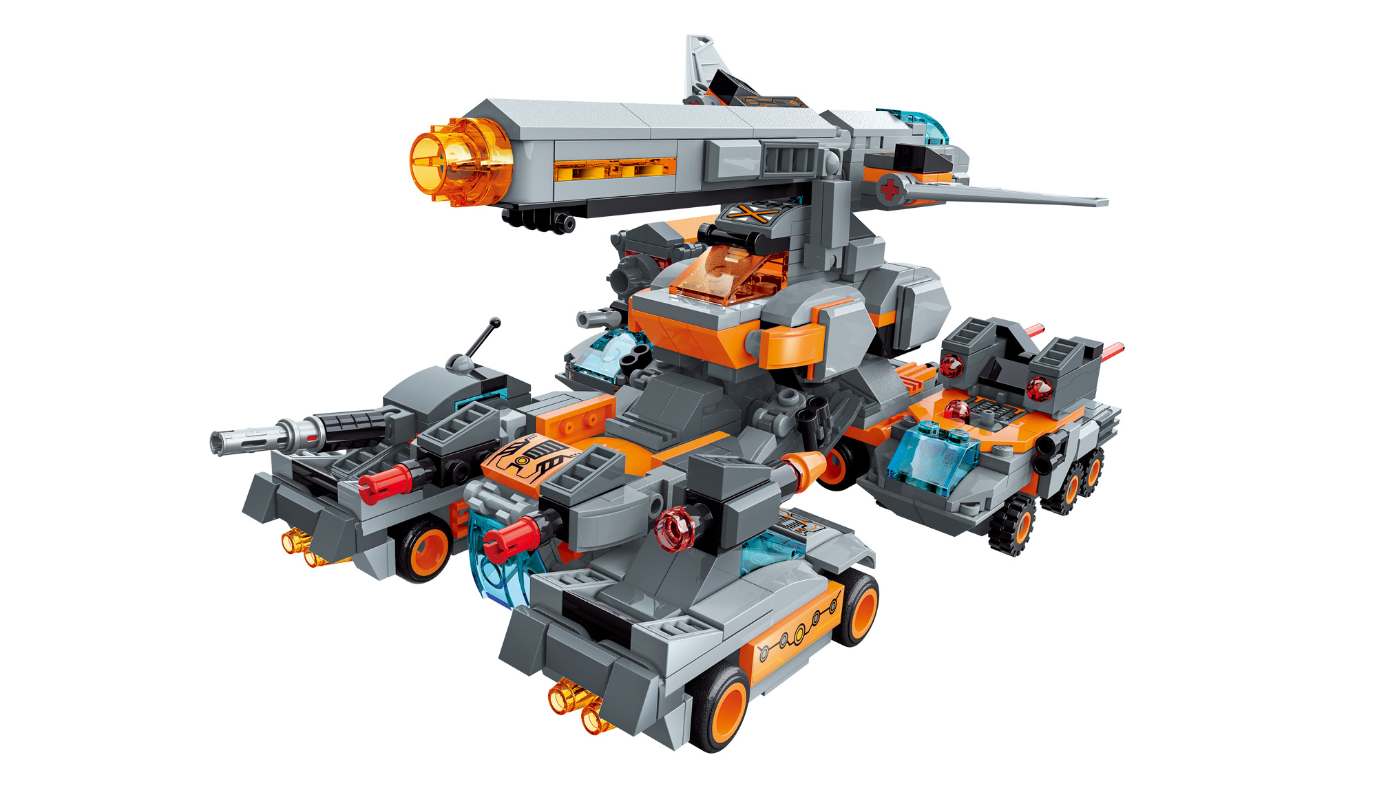 Sada ministavebnic bitevní techniky, jejichž kombinací vznikne možnost sestavit velký ucelený model mobilního dalekonosného děla.