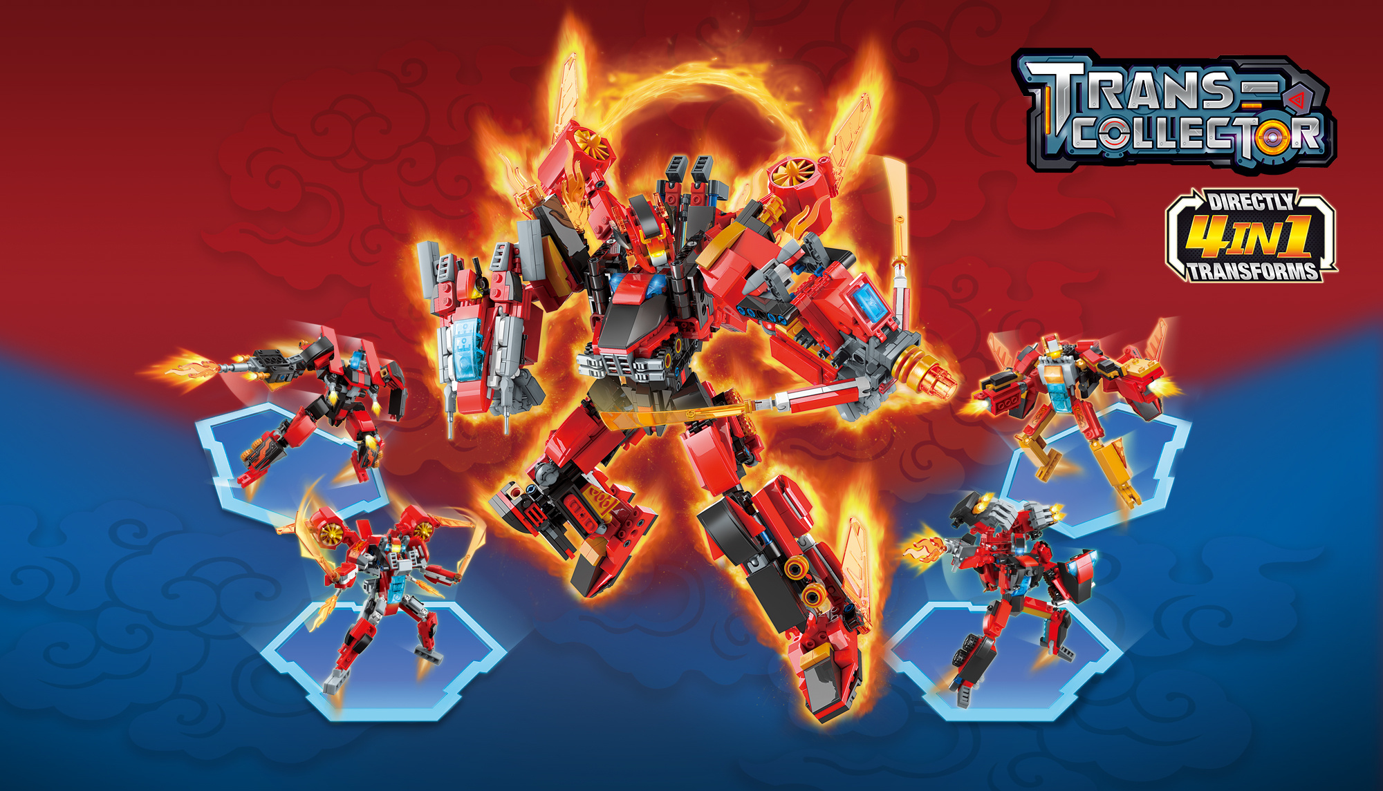 Čtveřice různých výstrojí a brnění ve figuře hřmotného velitele boha ohně. Hlavní vlastnosti: sada 4 modelů v 11201 dílkůnetoxický ABS plast