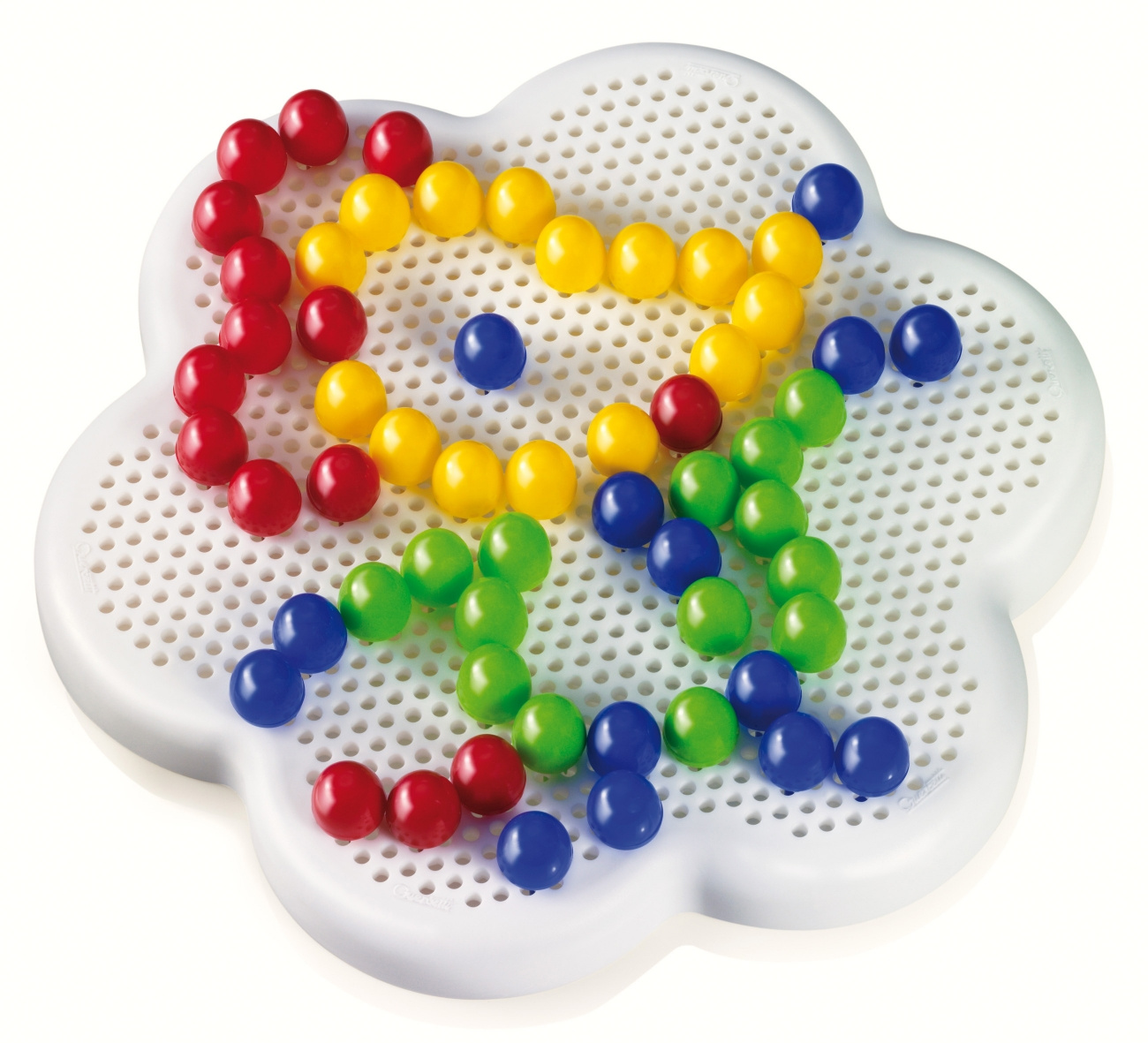 Mozaiky u děti rozvíjejí jemnou motoriku, tvořivost a fantazii. Skládají se z děrované hrací desky z měkkého ohebného plastu a zásobníku barevných kolíčků s hlavičkami v různých barvách, velikostech a počtu. Pomocí těchto kolíčků, které se zasazují do otvorů v hrací desce, tvoří děti různé obrázky nebo vzory. Po skončení hry lze kolíčky uložit do zásobníku, aby se nepoztrácely. Vyrobeno z plastů špičkové kvality.