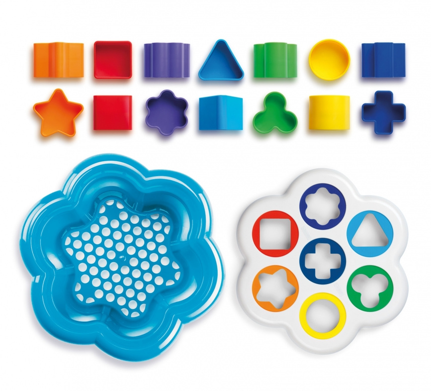 Stavebnice rozvíjející jemnou motoriku, tvořivost a schopnost rozeznávat barvy a tvary. Skládá se ze 14 různobarevných dílků sedmi různých tvarů, které se děti učí rozpoznat a vložit do správného otvoru ve víku. Po ukončení hry lze celou soupravu uložit do úhledné schránky ve tvaru květiny. Všechny díly stavebnice jsou omyvatelné.