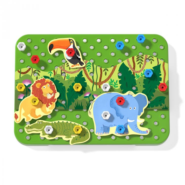 Nový způsob využití tradiční stavebnice Tecno. Pomocí šroubů lze vytvářet různé scény se zvířátky v džungli nebo na savaně. Šrouby lze snadno utáhnout bez použití nářadí. Kromě manuální zručnosti hračka učí i logickému uvažování (zebra a lev nemohou stát vedle sebe, jinak je zebra v nebezpečí života) a rozvíjí fantazii dětí (pštros běžel za slonem, aby ho požádal o radu?). Tecno puzzle zaručuje hodiny bezpečné a stimulující zábavy.