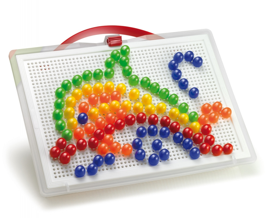 Mozaiky u děti rozvíjejí jemnou motoriku, tvořivost a fantazii. Skládají se z kufříku, děrované hrací desky a barevných kolíčků různých barev, průměrů a tvarů. Pomocí těchto kolíčků, které se zasazují do otvorů v hrací desce, tvoří děti různé obrázky nebo vzory. Po skončení hry lze vše uložit do kufříku, jehož víko po zajištění pojistkou tvoří sama hrací deska. Vyrobeno z plastů špičkové kvality.