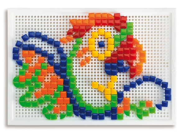 Mozaiky u děti rozvíjejí jemnou motoriku, tvořivost a fantazii. Skládají se z kufříku, děrované hrací desky a barevných kolíčků různých barev, průměrů a tvarů. Pomocí těchto kolíčků, které se zasazují do otvorů v hrací desce, tvoří děti různé obrázky nebo vzory. Po skončení hry lze vše uložit do kufříku, jehož víko po zajištění pojistkou tvoří sama hrací deska. Vyrobeno z plastů špičkové kvality.