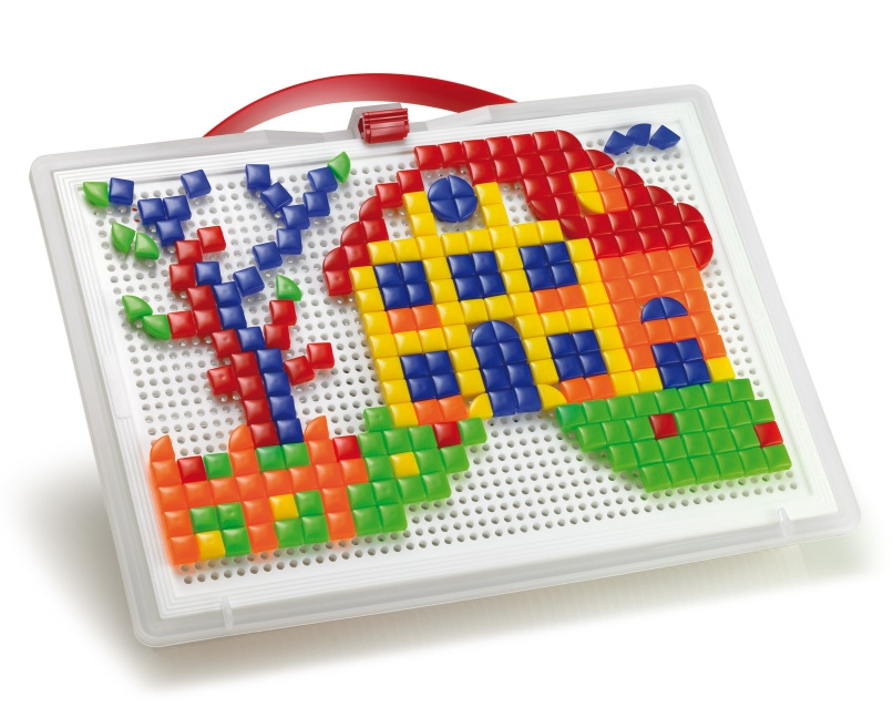 Mozaiky u děti rozvíjejí jemnou motoriku, tvořivost a fantazii. Skládají se z kufříku, děrované hrací desky a barevných kolíčků různých barev, průměrů a tvarů. Pomocí těchto kolíčků, které se zasazují do otvorů v hrací desce, tvoří děti různé obrázky nebo vzory. Po skončení hry lze vše uložit do kufříku, jehož víko po zajištění pojistkou tvoří sama hrací deska. Vyrobeno z plastů špičkové kvality.