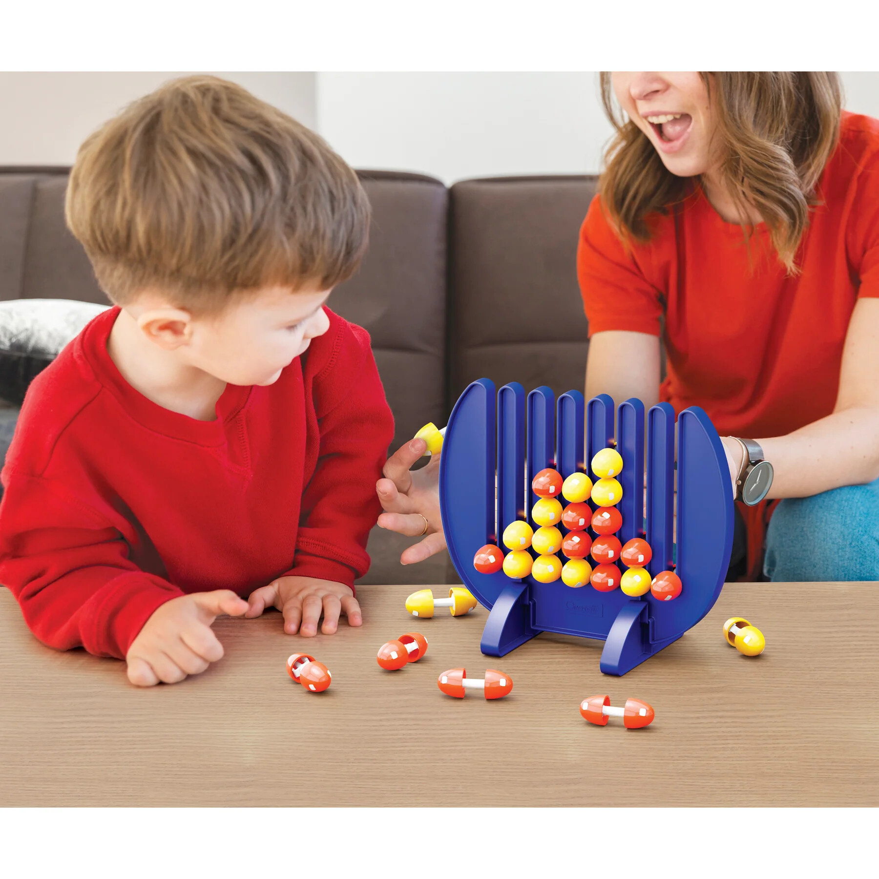 3. Hráči střídavě umísťují své kolíčky do drážek v mřížce a snaží se umístit čtyři z nich do vodorovné, svislé nebo příčné linie. Zároveň musí zabránit soupeři, aby udělal totéž. Důležitá je nejen strategie, ale také soustředění se.
