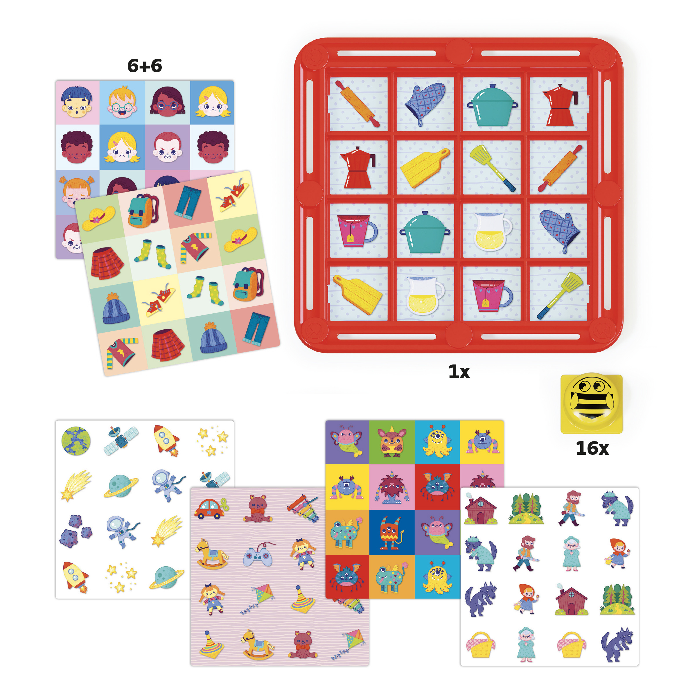 Zábavná hra na procvičení paměti na principu pexesa pro děti i celou rodinu. Fantamemo obsahuje 12 ilustrovaných výměnných karet a 192 originálních kreseb na procvičení vizuální paměti a schopnosti koncentrace. Vtipné kloboučky s včelkami přikryjí hrací plochu a vy musíte najít tu správnou dvojici obrázků ukrytých pod včelkami.