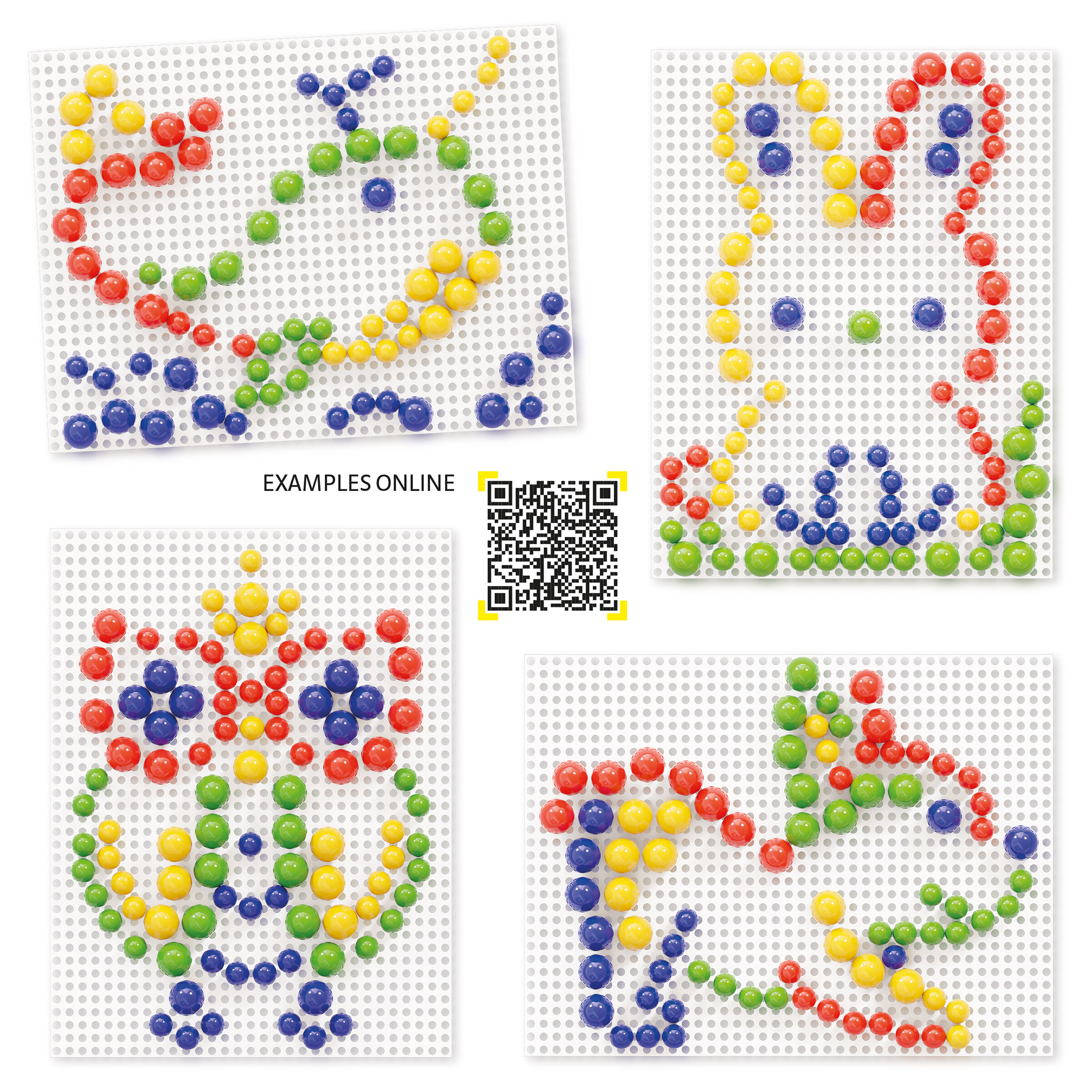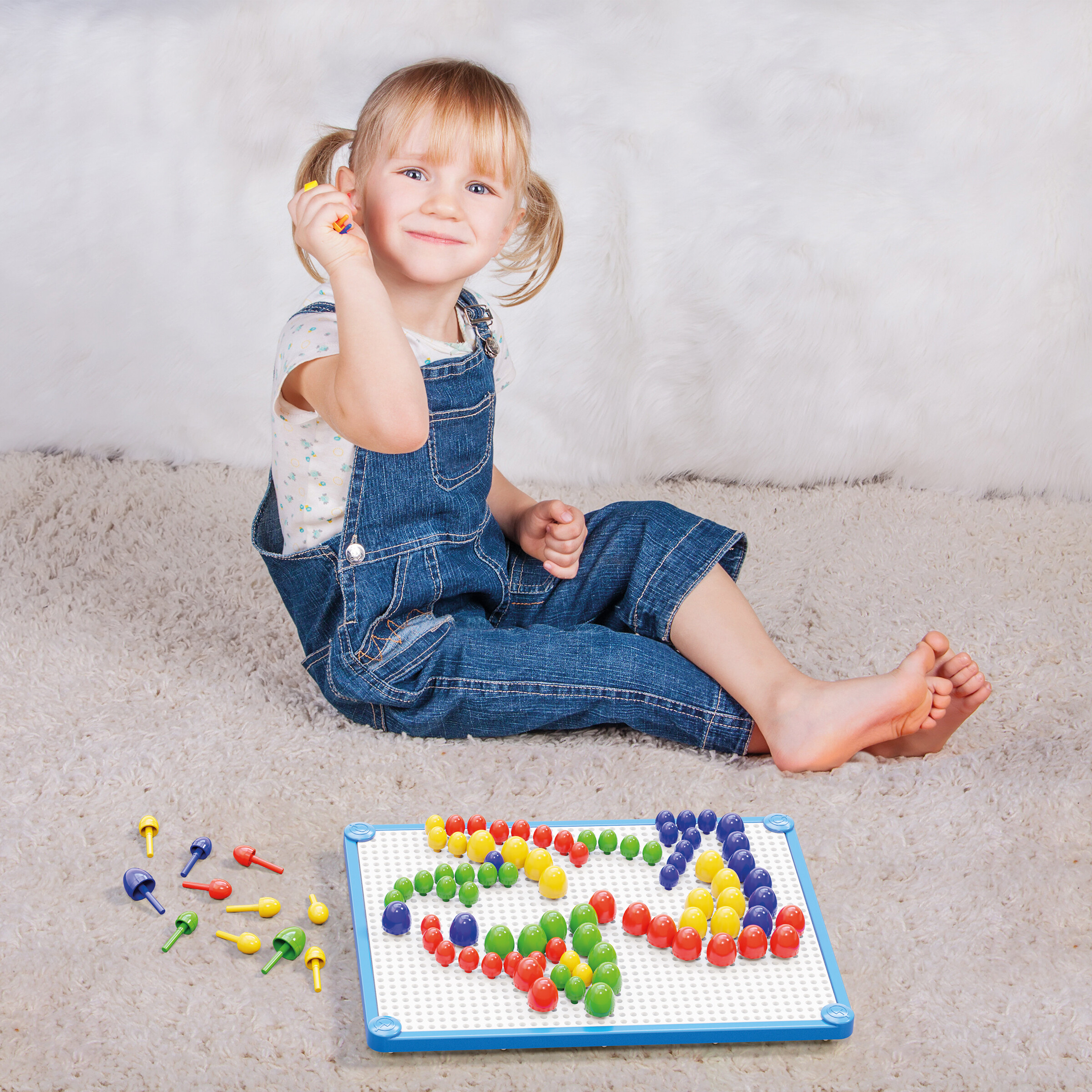 Nadčasová kompoziční hra, která baví již několik generací dětí. Děti mohou projevit svou kreativitu a trénovat koordinaci ruky a oka vkládáním kolíčků do desky. Větší a velkorysejší deska usnadňuje skládání a nový barevný rámeček zkrášluje umělecké dílo. Dítě může skládat libovolně nebo kopírovat ukázky z online alba (přístupné pomocí QR KÓDU na zadní straně krabice).