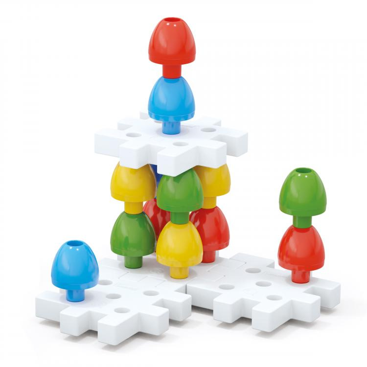 Stačí však odložit obrázky stranou a podložky s kolíčky se rázem promění v originální stavebnici, díky níž lze stavět vysoké věže či jiné konstrukce dle vlastní fantazie. Skvělá souprava tak vlastně v jednom balení přináší dvě hry, které u dětí od 2 do 5 let procvičují a rozvíjejí jemnou motoriku i koordinaci ruky a oka a zároveň podporují jejich kognitivní i jazykový vývoj.