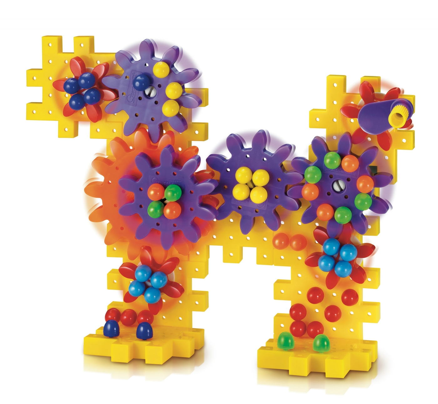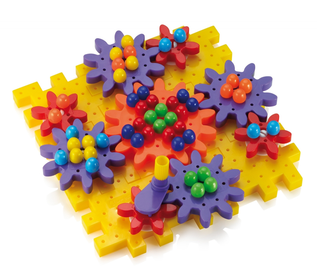 Převodové stavebnice Georello rozvíjejí jemnou motoriku, tvořivost, fantazii a kombinační myšlení. Skládají se z perforovaných desek, os, převodových kol, fi gurek domácích či divokých zvířátek a stromů. Pomocí kličky lze celý mechanismus uvést do pohybu a vše se otáčí jako na kolotoči.Každá stavebnice je kompatibilní s ostatními stavebnicemi řady Georello. Vyrobeno z plastů špičkové kvality. Oceněno titulem „Správná hračka“.