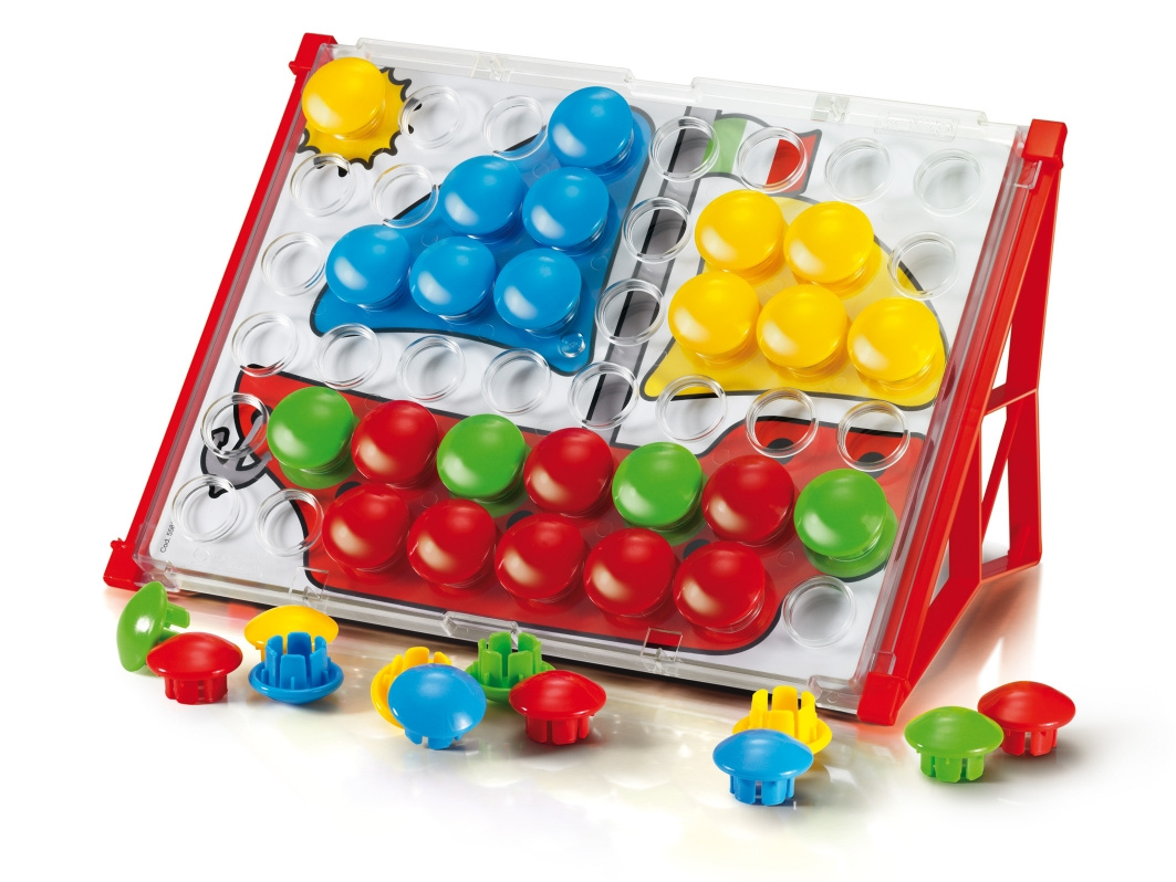 Mozaiky určené dětem již od 2 let rozvíjejí vizuomotorickou koordinaci, jemnou motoriku a tvořivé myšlení. Balení obsahuje 48 velkých nerozbitných knoflíků o průměru 32 mm, průhlednou desku s otvory, pod kterou lze snadno vložit jednu z 8 oboustranných karet s 16 předlohami (barevné nebo černobílé obrázky), a stojánek (4195) nebo kufřík (4190), který zároveň plní funkci stojánku, a umožňuje tak usazení desky v nakloněné poloze a využití i pro cestovní účely (např. v autě, ve vlaku, v letadle).