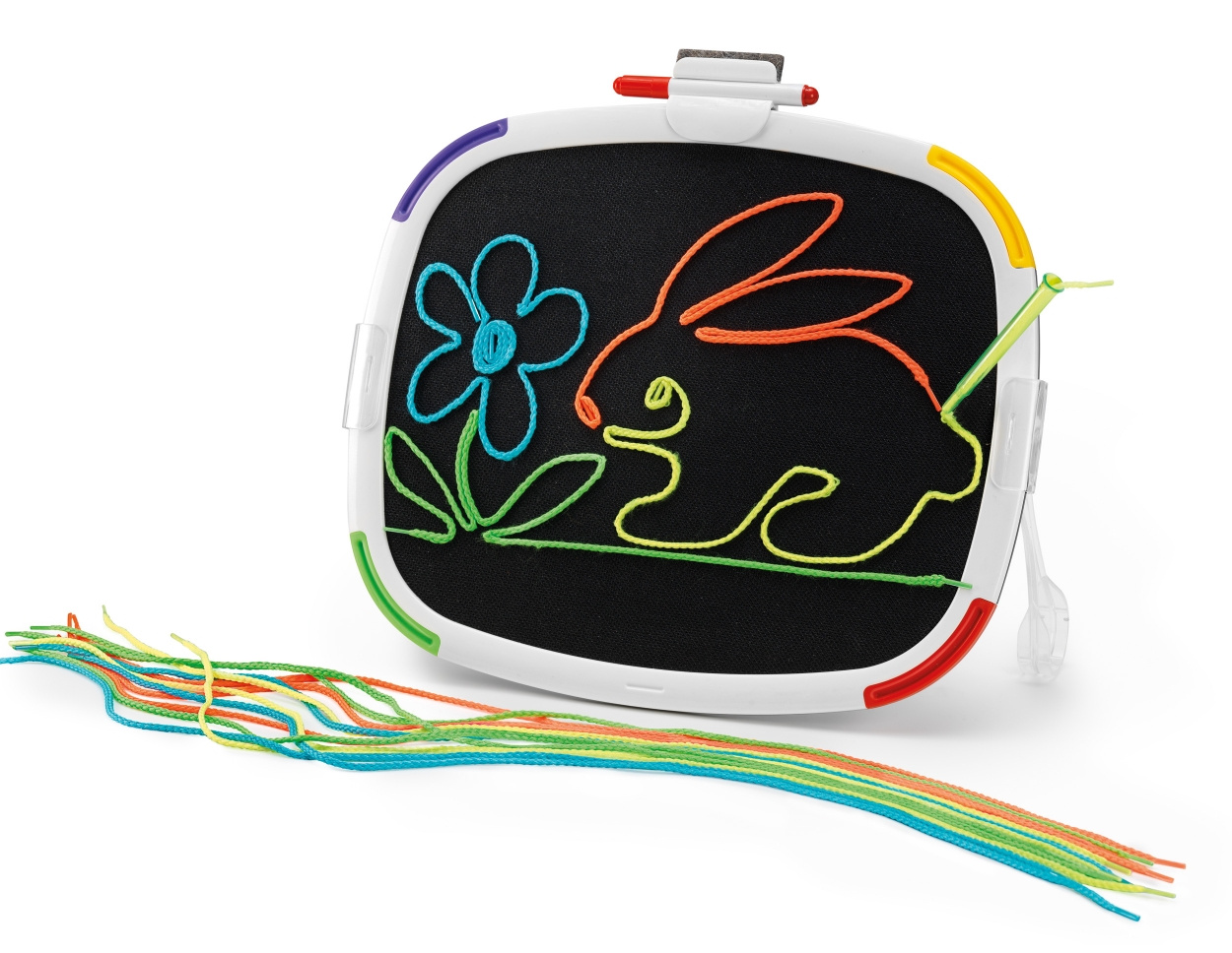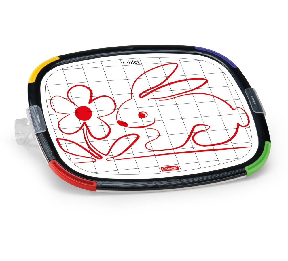 Filò Tablet Basic je nová vyšívací souprava určená dětem od 4 let. Děti se zabaví díky originálnímu kreslení pomocí tkaniček na suchý zip na straně jedné, na straně druhé mohou využít malování s fixem na mazací tabulce. Kreslení pomocí speciálních per, šňůrek a suchého zipu vytváří z malování jedinečný zážitek. Práce se soupravou pomáhá dětem uvolnit zápěstí, zlepšit vizuomotorickou koordinaci i jemnou motoriku a rozvíjí kreativitu.