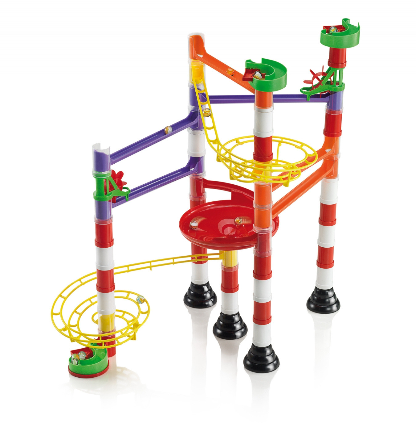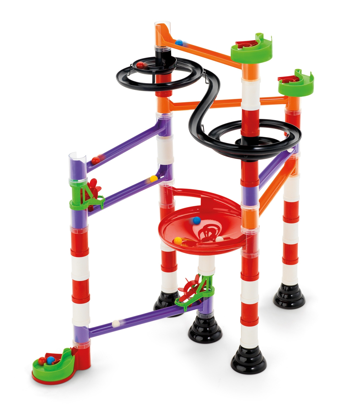 Barevné kuličkové dráhy umožňují sestavit mnohotvárné dráhy obohacené sběrnými koši, spirálami, můstky, mlýnky a zásobníky s pružinou, jež jsou umístěny vždy na začátku a konci dráhy a zajištují plynulé spouštění kuliček. Kuličkové dráhy patří mezi vzdělávací hračky, které děti učí základům fyzikálních zákonů gravitace a mechaniky. Stavebnice jsou vzájemně plně kompatibilní.