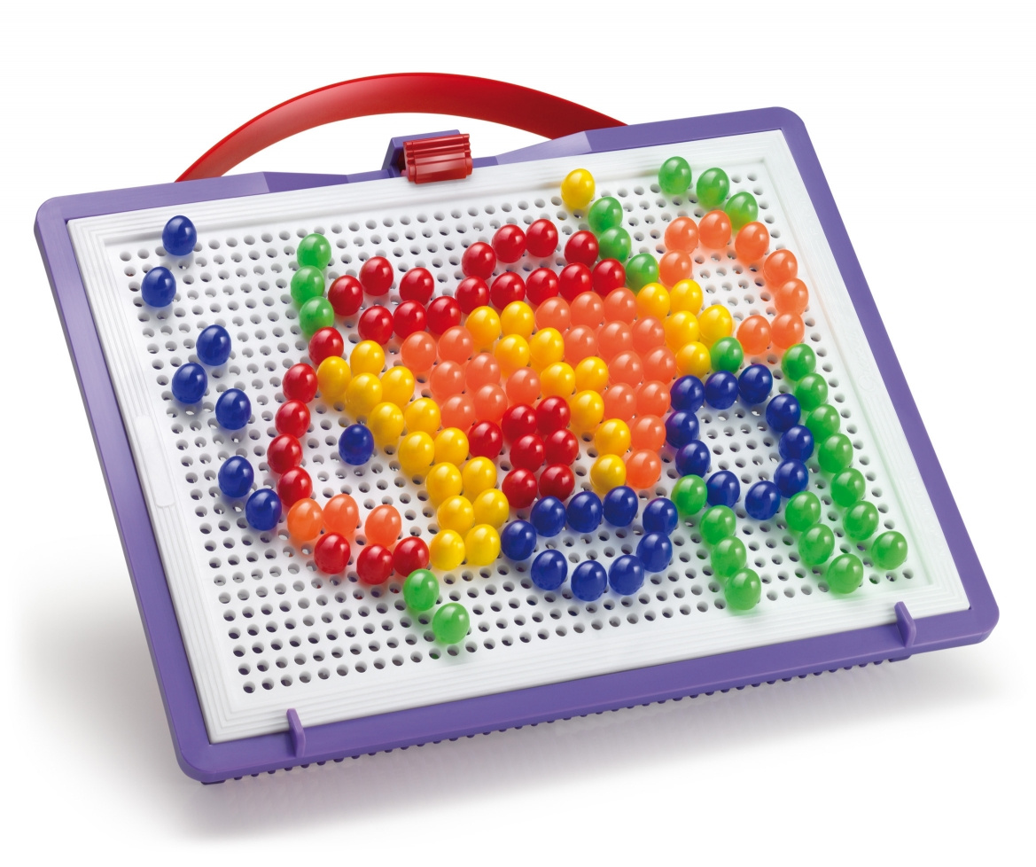 Mozaiky u dětí rozvíjejí jemnou motoriku, tvořivost a fantazii. Skládají se z kufříku, děrované hrací desky a barevných kolíčků s hlavičkami různých barev, průměrů a tvarů. Pomocí těchto kolíčků, které se zasazují do otvorů v hrací desce, tvoří děti různé obrázky nebo vzory. Po skončení hry lze vše uložit do kufříku, jehož víko po zajištění pojistkou tvoří sama hrací deska. Vyrobeno z plastů špičkové kvality.