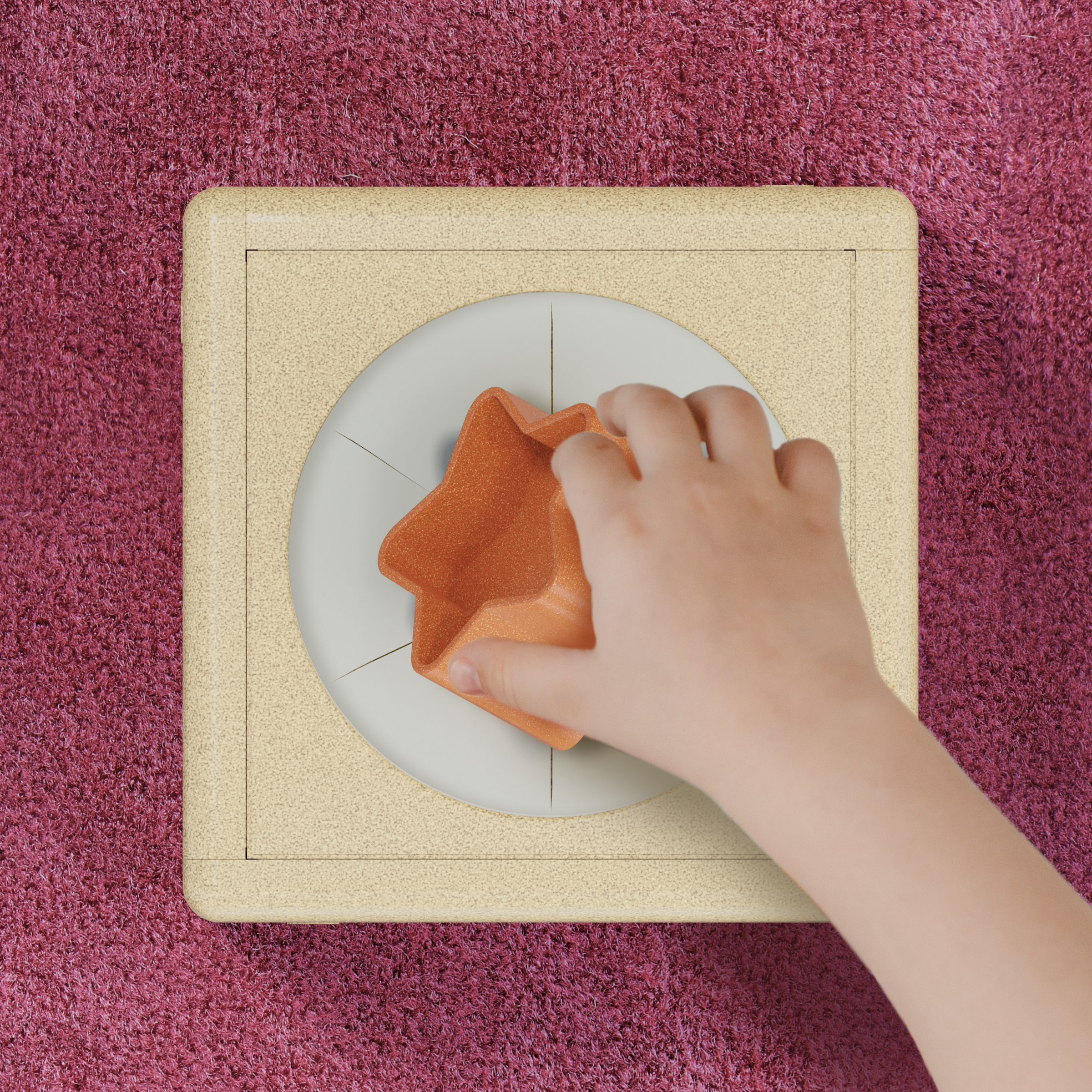 1 kostka s otvory různých tvarů a barev