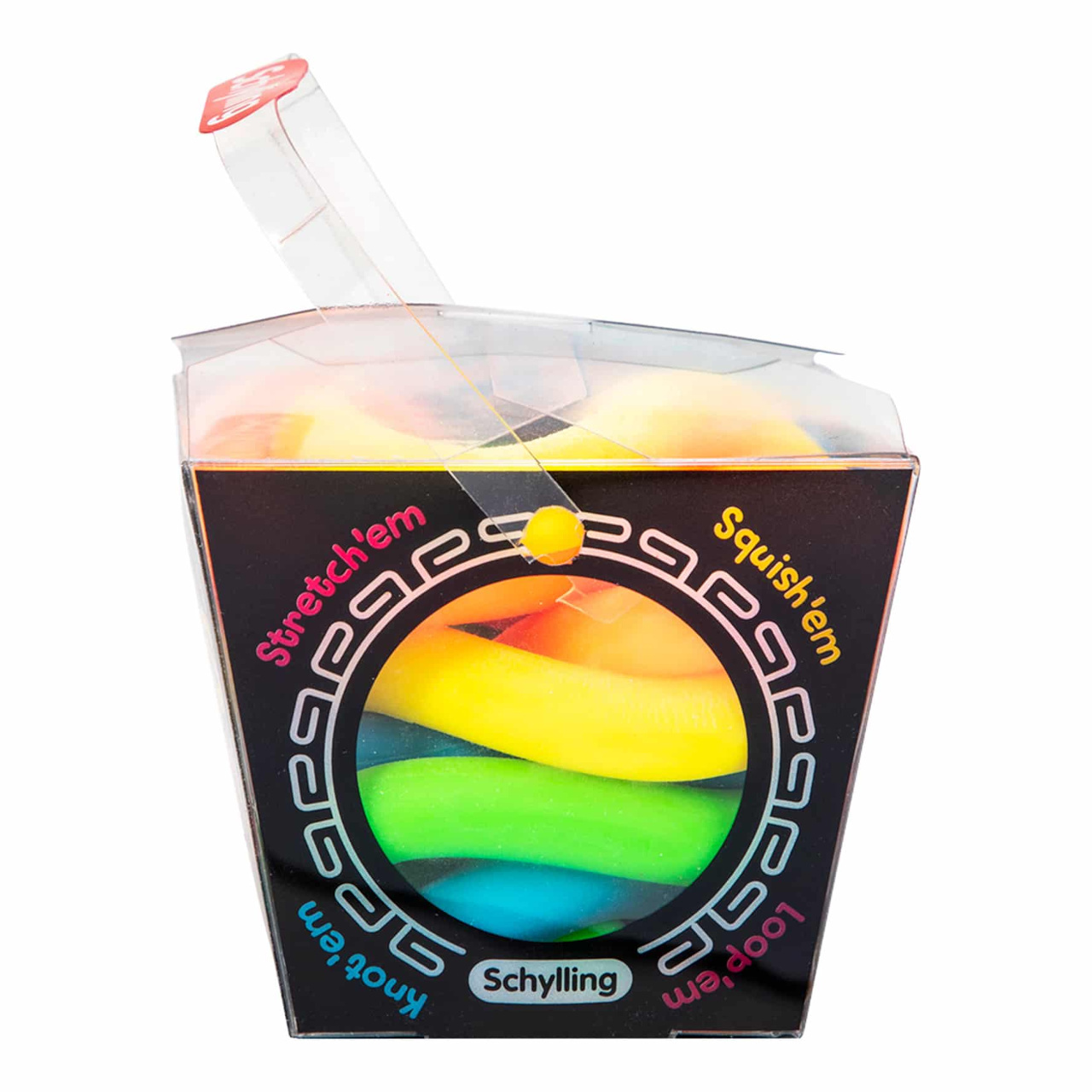 NeeDoh Noodlies - to je pestrobarevná zábavná hračka pro hraní bez nepořádku. Neonově zelené, modré, růžové a oranžové natahovací nudle můžete mačkat, natahovat nebo zauzlovat tak, jak se Vám líbí a vždy se vrátí zpět do původního tvaru. Nudle nabízejí jedinečný zážitek z nekonečné zábavy při hraní. Jsou skvělým dárkem a jsou také ideální pro školy, párty i osoby se speciálními potřebami. Nudle jsou vyrobeny z netoxického materiálů připomínající těsto. Ideální hračka na cesty pro neposedné děti. Nudle mohou sloužit také jako prostředek k úlevě od úzkosti.