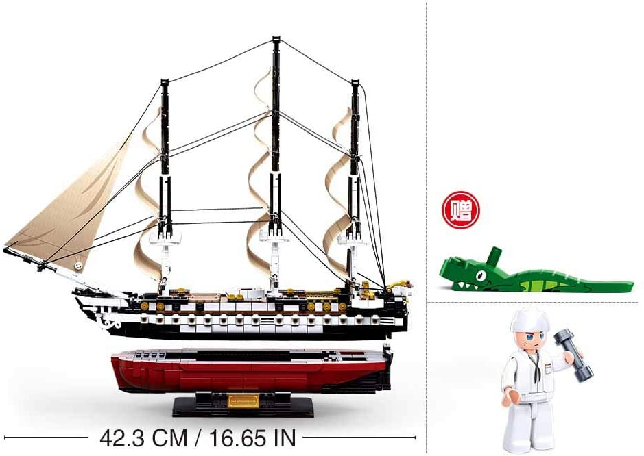 Postavte si model americké válečné plachetnice USS Constitution v měřítku 1:170. Model je po sestavení dlouhý 42 cm. Součásti stavebnice jsou je také figurka námořníka. Sestavený model se skládá z 1118 dílků.