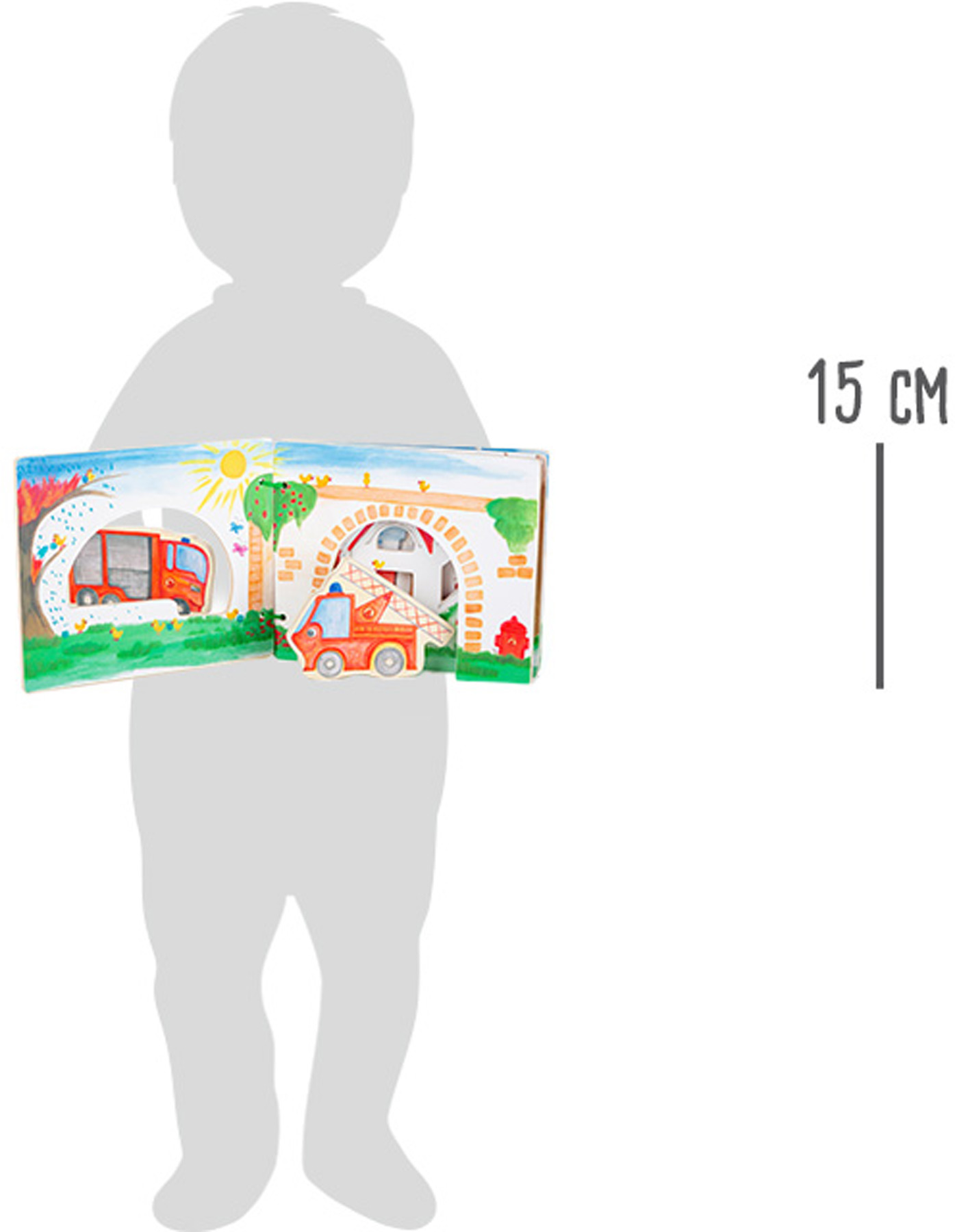 Máme výjezd, hoří! S touto interaktivní knížkou vyrobenou z FSC certifikovaného dřeva se děti naučí, jak to chodí v životě hasiče. Dřevěné figurky inspirují dětskou fantazii a děti si třeba vymyslí svůj vlastní příběh. Po uhašení ohně mohou děti figurky strojů vrátit zpět do knihy. Naučná kniha, která rozvíjí představivost a vypravěčství u dětí.