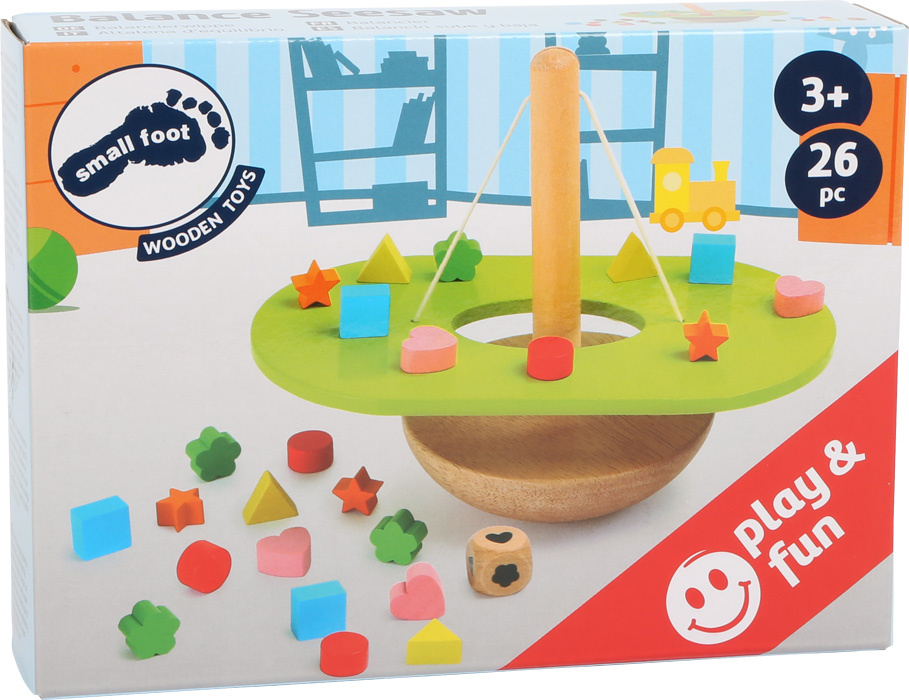 Small Foot Dřevěná motorická hračka Vyvažování balancující houpačka je neobyčejná hra co vás okamžitě pohltí svými jedinečnými výzvami, které z vás učiní mistra rovnováhy. Oddejte se hře, kde každý váš tah je krokem k dokonalé harmonii! Nejenže je tato hračka krásně vyrobena z kvalitního dřeva, ale také se stane vaším společníkem ve světě koncentrace a strategie. S 26 pestrobarevnými dílky a jednou hrací kostkou se Small Foot stává nekonečným dobrodružstvím, kde je každá hra zcela odlišná. Váš malý stratég se naučí rychle přemýšlet, pečlivě plánovat a rozvíjet svou jemnou motoriku, trpělivost a zároveň mu hra přinese pocit úspěchu, zatímco celá rodina bude napjatě sledovat, zda se houpačka udrží v rovnováze!