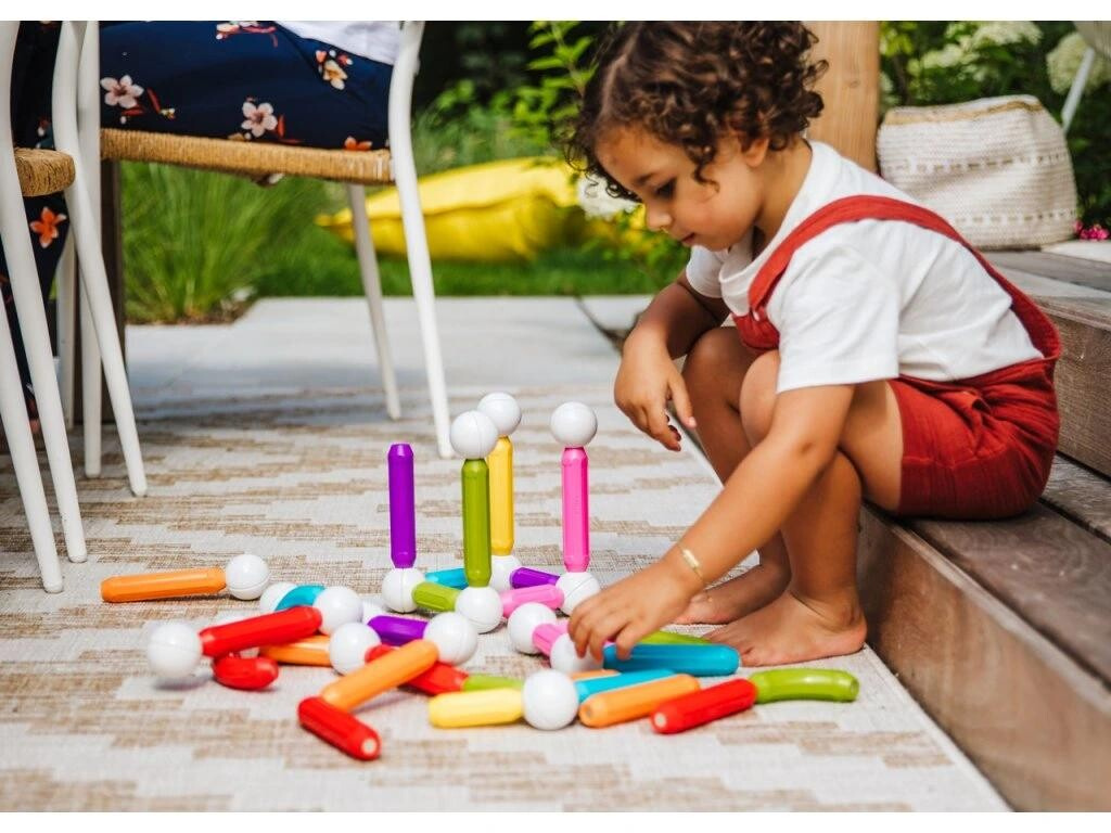 SmartMax kontejner obsahující 100 ks magnetických stavebních dílů je ideální hračkou pro stavění krásných a velkých staveb. Tato magnetická stavebnice představuje dokonalou hračku pro malé děti od 1 roku. Z této sady děti postaví nádherné stavby, mosty, věže apod. Kontejner je také ideální pro dětské koutky a školky. Stavebnice je uložena v praktickém kontejneru. Červené víko i dno kontejneru zároveň slouží jako podkladové desky pro stavby.