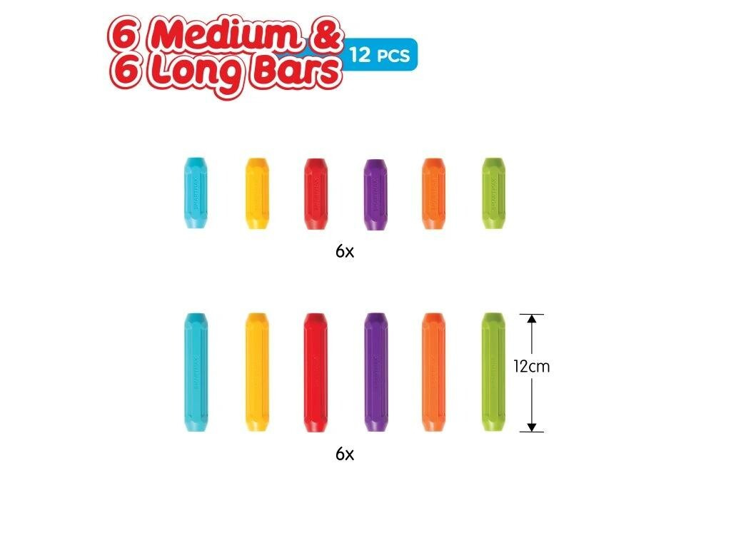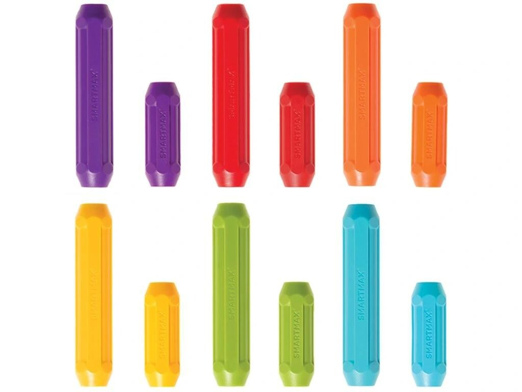 Skvělé balení, ve kterém najdete 6 krátkých a 6 dlouhých tyčinek, které poslouží jako doplněk ke všem základním sestavám stavebnice SmartMax. Ve spojení s dalšími základními i rozšiřujícími sadami poskytne vašim dětem nové možnosti při stavění. Tato magnetická stavebnice představuje ideální hračku pro malé děti od dvou let. Přitahování a odpuzování magnetů je ohromí na jejich cestě za poznáním. Starší děti mohou budovat věže, mosty a další super velké stavby. Jednotlivé magnetické díly se jednoduše spojují jedním kliknutím. Všechny díly lze kombinovat se všemi stavebnicemi SmartMax.