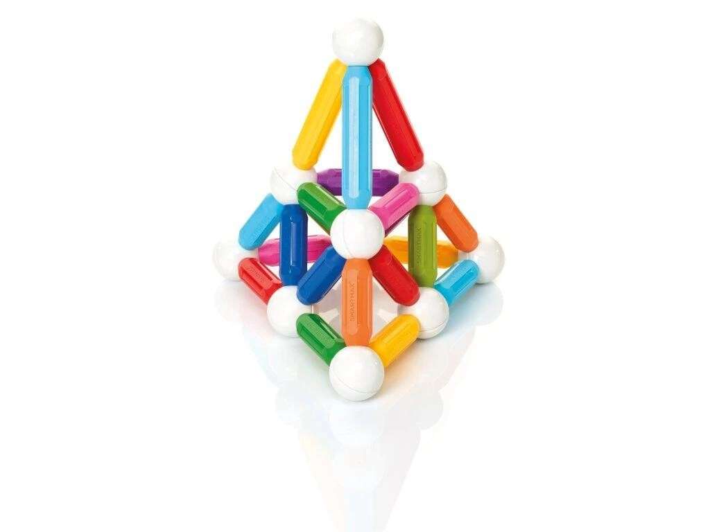 Toto balení belgické magnetické stavebnice SmartMax, obsahující celkem 42ks (12 dlouhých tyček po 12cm, 18 tyček středních a 12 koulí) představuje ideální hračku pro malé děti od jednoho roku. Přitahování a odpuzování magnetů je ohromí na jejich cestě za poznáním. Starší děti mohou budovat věže, mosty a další super velké stavby. Jednotlivé magnetické díly se jednoduše spojují jedním kliknutím. Všechny díly lze kombinovat se všemi stavebnicemi SmartMax. Součástí tohoto balení je i brožurka s návody, co všechno z této sady můžete vytvořit.