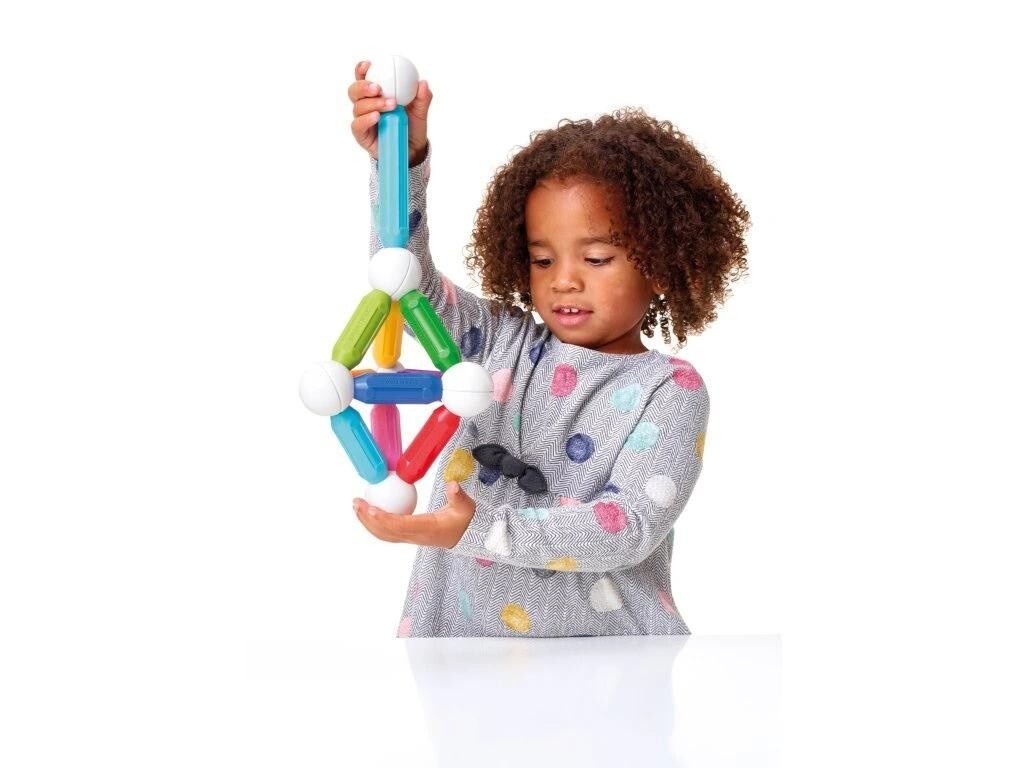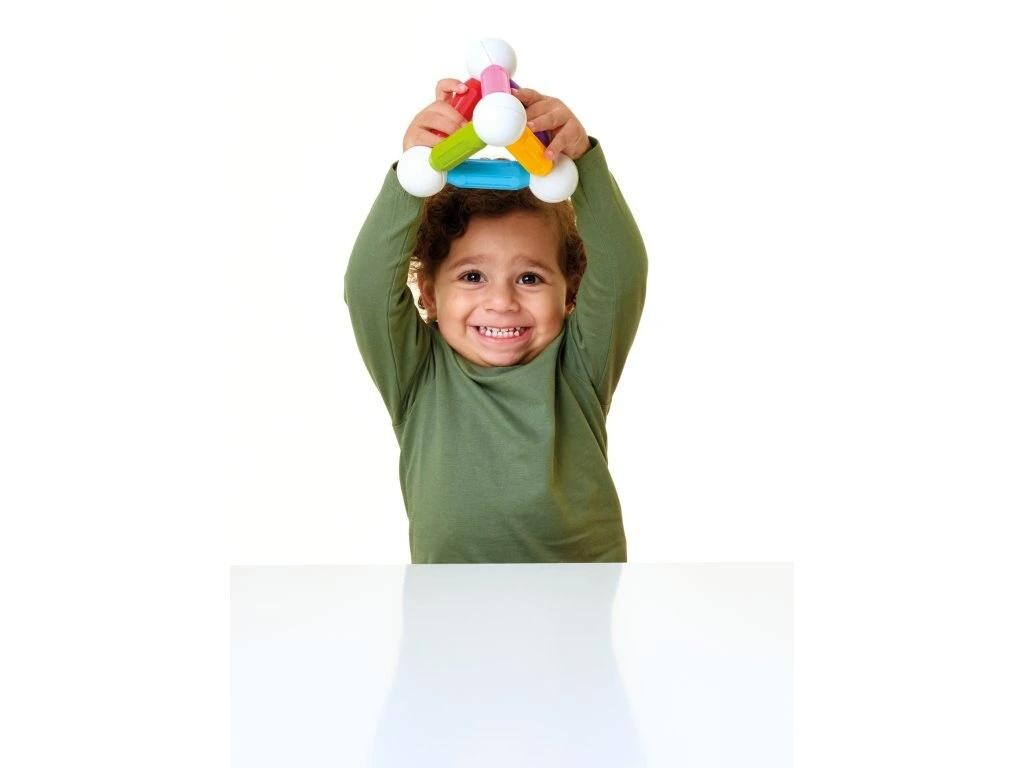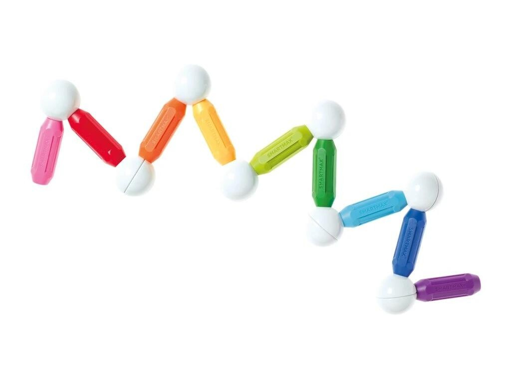 Tato belgická magnetická stavebnice SmartMax představuje ideální hračku pro malé děti od 1 roku. Balení Start obsahuje 3 velké tyčky (dlouhé 12cm), 12 středních tyček a 8 spojovacích koulí. Přitahování a odpuzování magnetů ohromí děti na jejich cestě za poznáním. Malé děti vytvoří jednoduché 2D tvary. Starší děti mohou budovat věže, mosty a další super velké stavby. Jednotlivé magnetické díly se jednoduše spojují jedním kliknutím. Všechny díly lze kombinovat se všemi stavebnicemi SmartMax. Součástí balení je i brožurka s ukázkami, co všechno lze z této sady postavit.