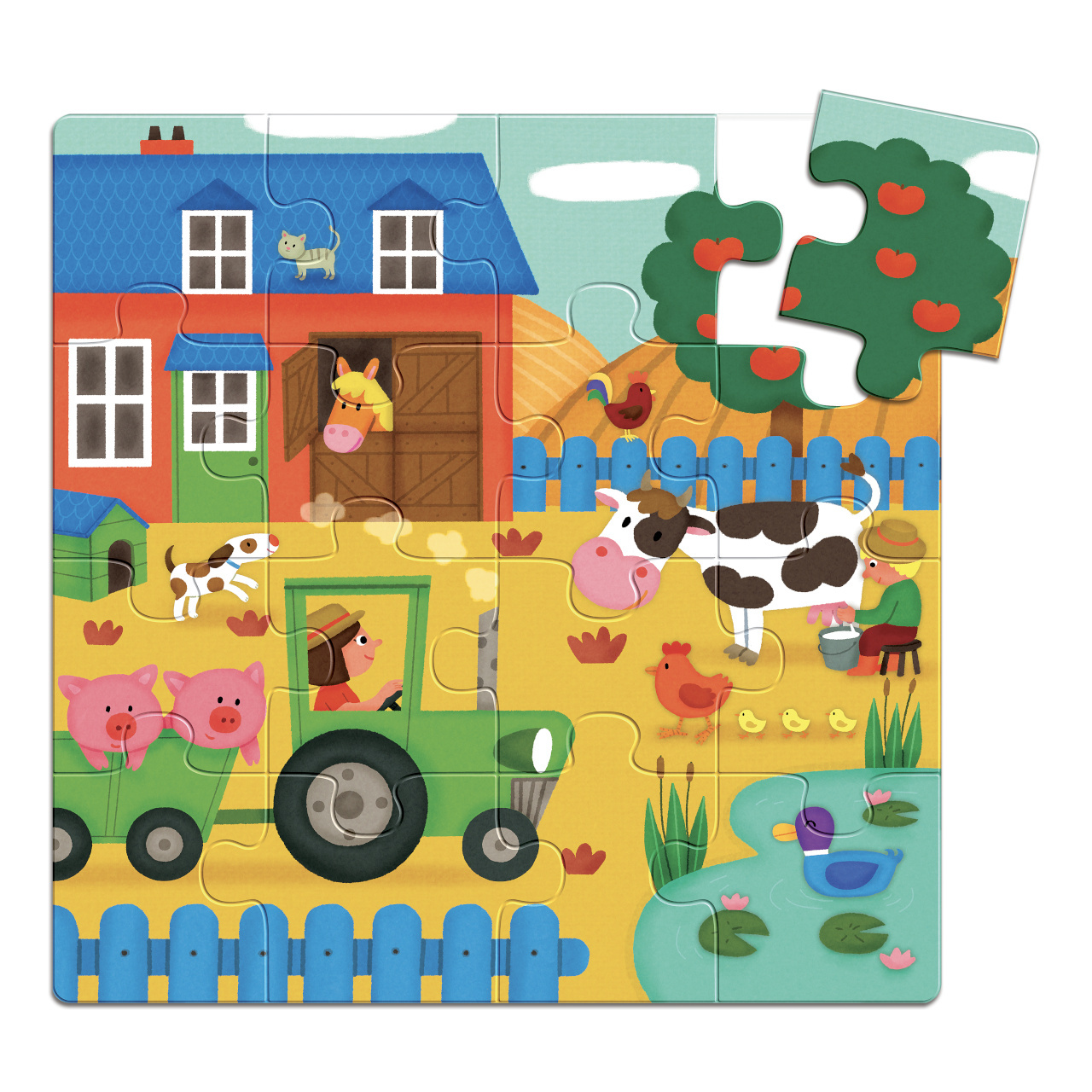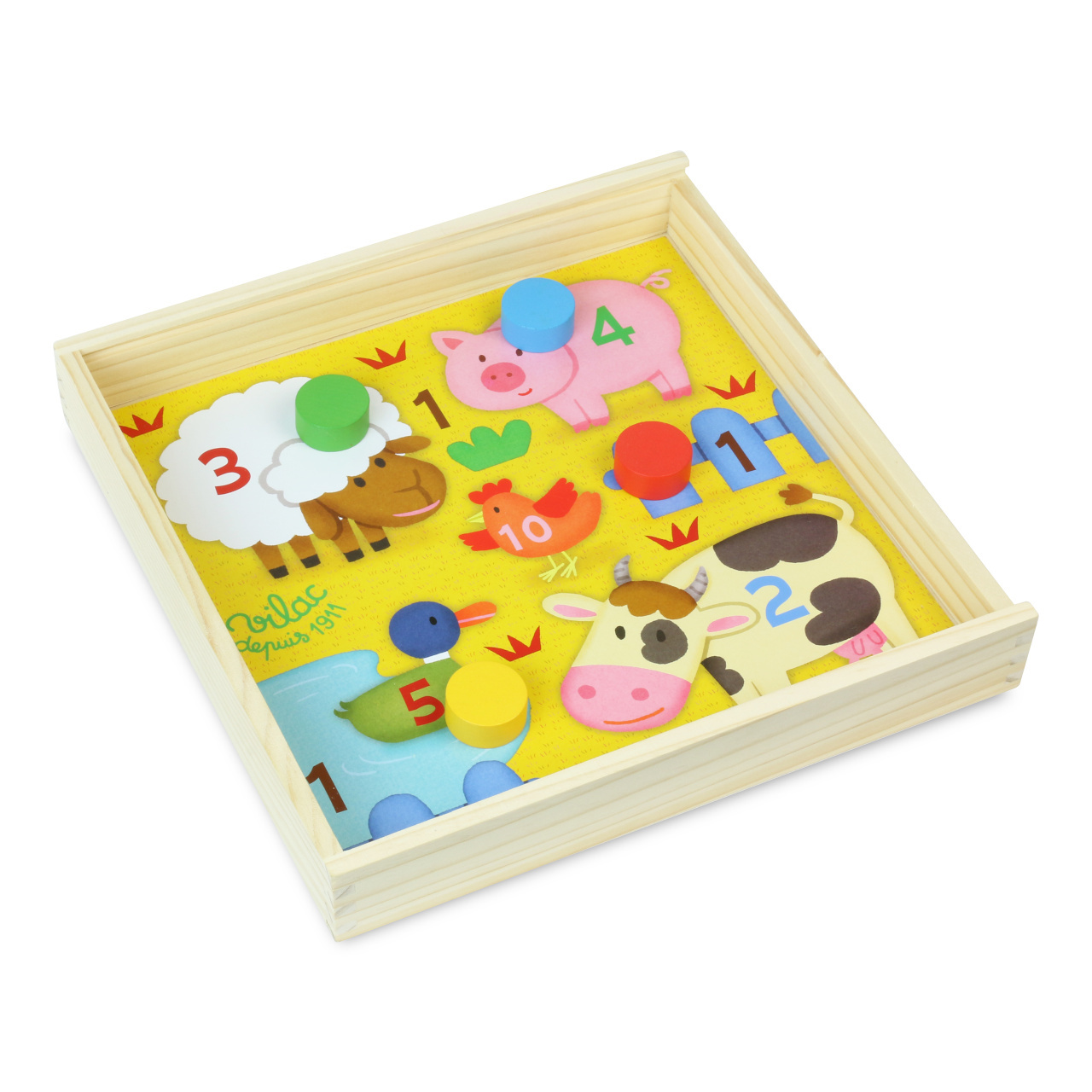 O odpolední zábavu máte postaráno! Sada her upravených pro nejmenší děti, s roztomilými zvířátky z farmy. Obsahuje puzzle s velkými dílky, házení na terč, magnetické rybaření a Husí hru. V Husí hře se hráči pohybují po spirálovitém hracím poli a snaží se vyhnout políčkům s nástrahami. Všechny součásti jsou uschovány v praktické dřevěné krabici, jejíž bohatě dekorované víko slouží jako herní plán.