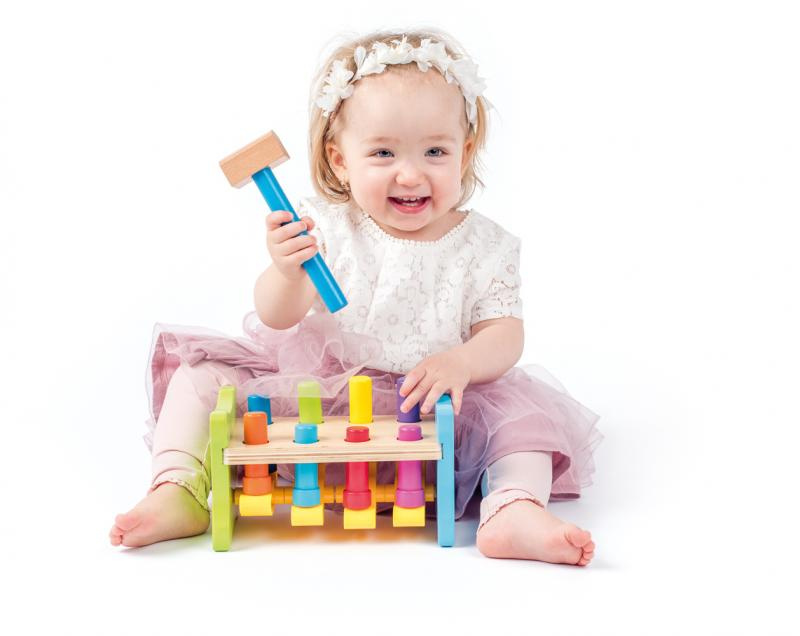 Balení obsahuje podstavec s 8 dřevěnými kolíky a kladívko.