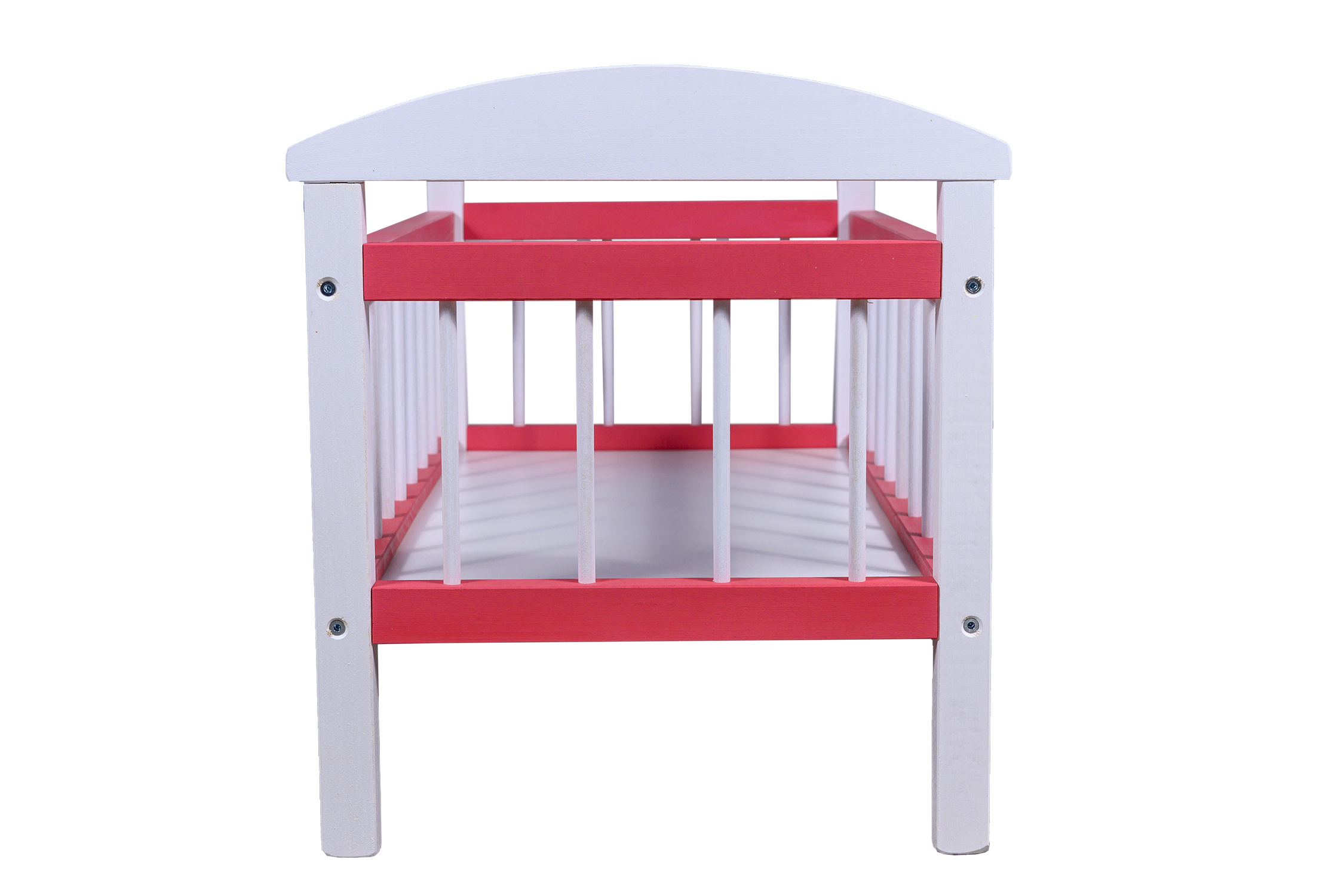 Barevná postýlka vyrobená z bukového dřeva. Délka postýlky 58, šířka 33 a výška 37 cm. Snadná a rychlá montáž. Postýlku lze jednoduše rozebrat a uschovat. Spojovací materiál je součástí balení. Peřinku lze dokoupit samostatně.