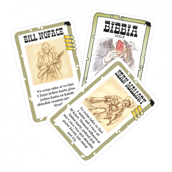 Hra obsahuje: 63 kariet Dodge City, 13 kariet High Noon a pravidlá.