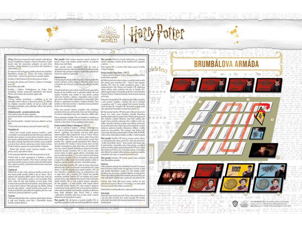 Cieľom hry je zostaviť tri štvorice kartičiek s jednotlivými kúzlami (Expelliarmus, Stupefy a Expecto Patronum) a zakončiť hru kartičkou Dumbledorovej armády – vyhráva ten hráč, ktorému sa to podarí najskôr. Originálna stolná rodinná hra pre malých aj veľkých hráčov, s ktorou sa stanete súčasťou známeho príbehu Harry Pottera. Vďaka jednoduchým pravidlám si ju s chuťou zahrá ako skalný fanúšik hrdinov z Rokfortu, tak napríklad aj starý otec, ktorý príbehy Joanne Rowlingovej nepozná. Vyrobené v SR.