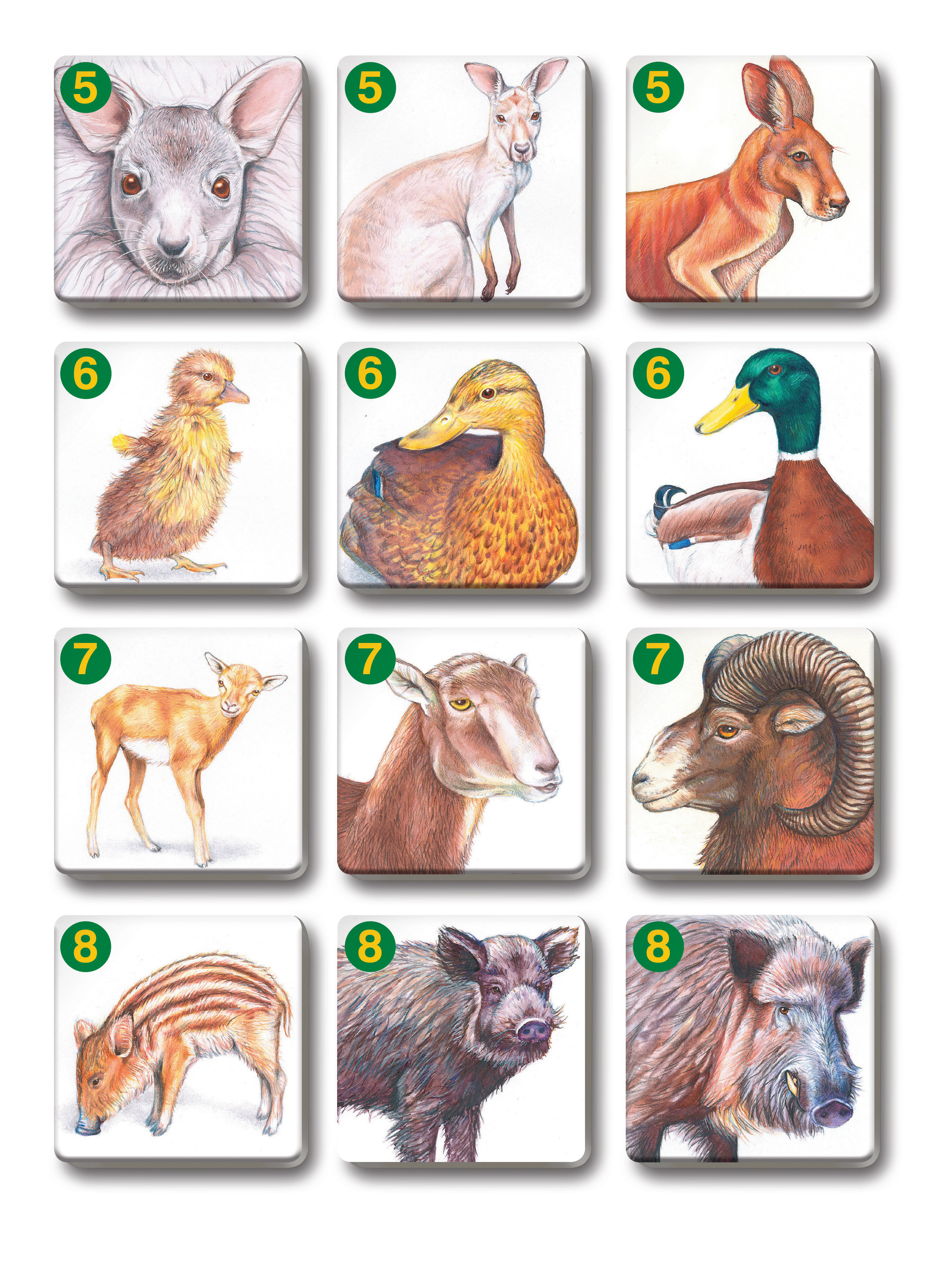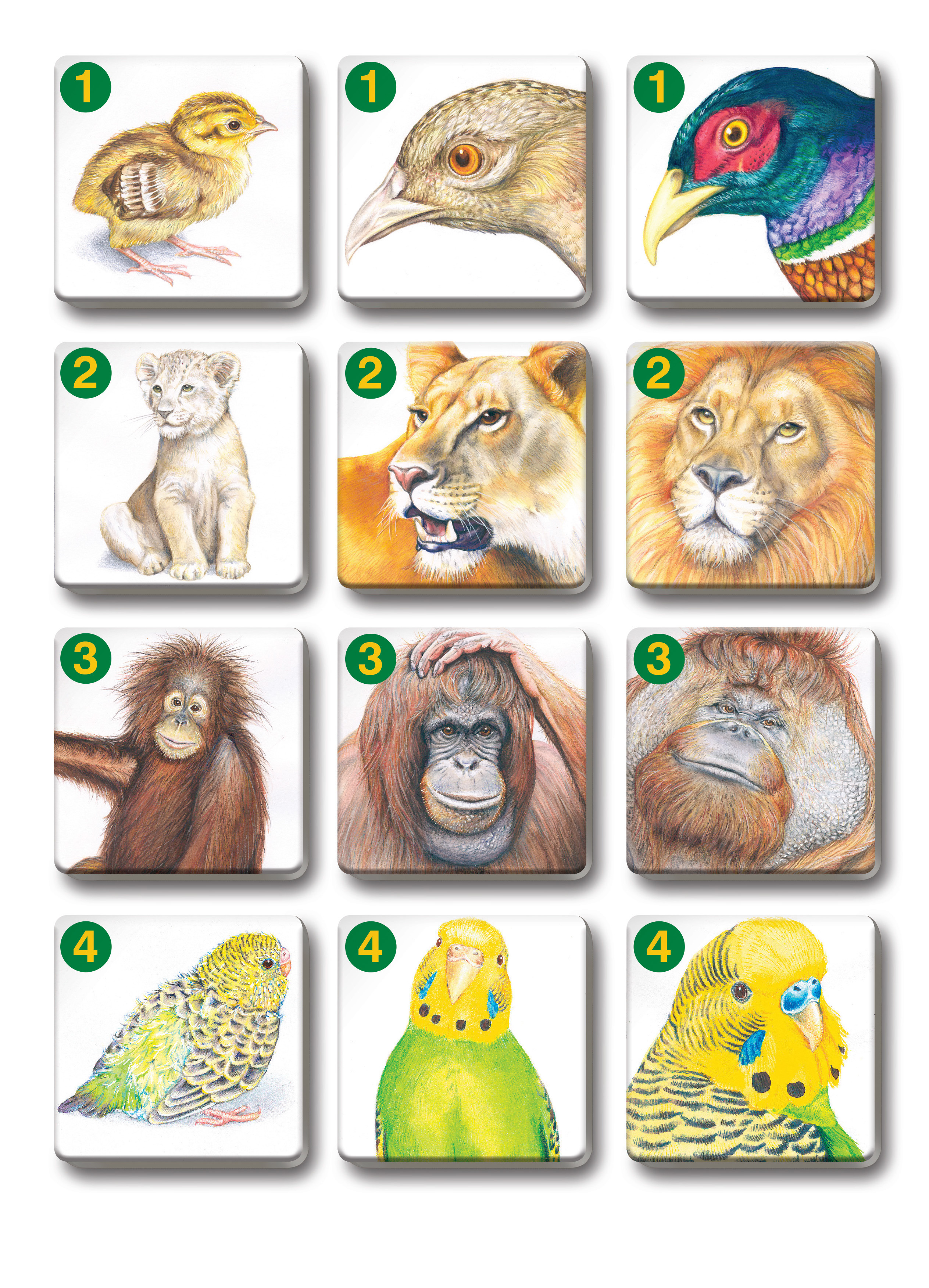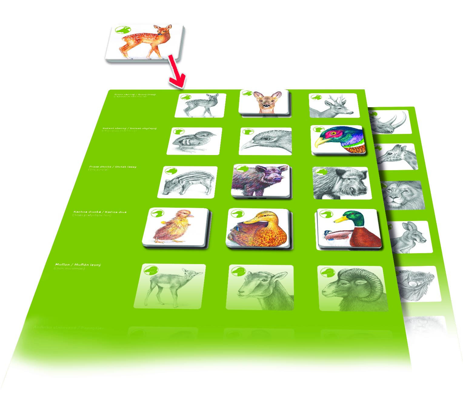 - 36 kartičiek = 12 trojíc zvieracej rodinky